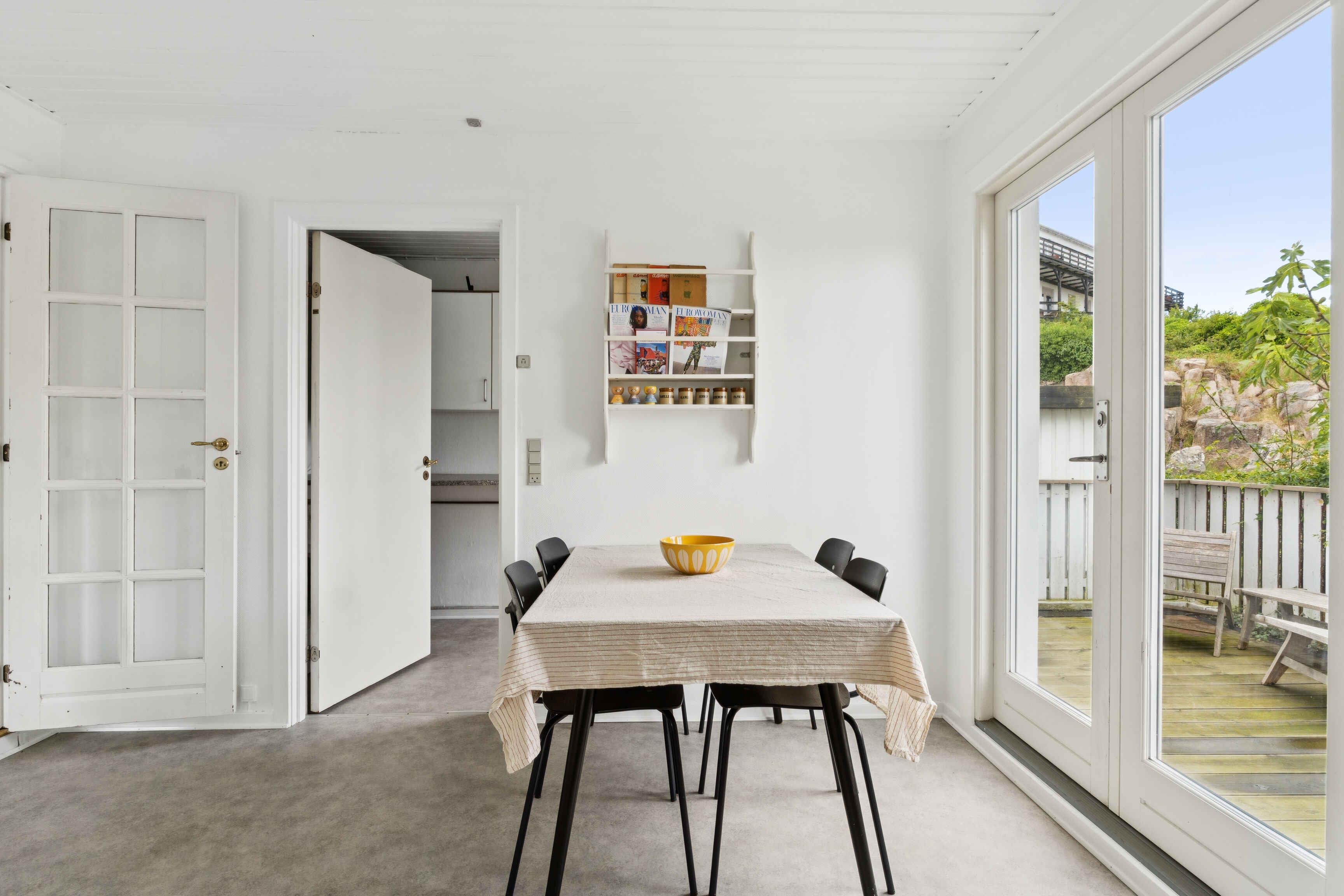 Denne rummelige feriebolig på 108 m² ligger tæt på kysten og byder på en afslappet base for feriedage året rundt. Indretningen er funktionel med et naturligt lysindfald og god plads til både fælles samvær og ro. Boligen rummer to separate soveværelser med i alt fire sovepladser. Fra terrassen og haven er der havudsigt Opholdsrummet samler køkken, spiseplads og stue i ét. Her er nem adgang til den udendørs terrasse, hvor man kan nyde dagens måltider eller lytte til havets rolige lyde i baggrunden. Internet er naturligvis tilgængeligt og gør det muligt at kombinere ferie med fleksibelt arbejde. Med kun 50 meter til vandet er det oplagt at starte dagen med en dukkert eller en gåtur langs stranden. Havet er aldrig langt væk, og man kan hurtigt finde ro i den særlige kystnære stemning. Området er roligt og børnevenligt. Her er trygge rammer for både leg og afslapning. Fra boligen er der få minutters gang til havnen, hvor fiskerbåde lægger til, og ishusene lokker med smag af sommer. Stemningen er uformel og autentisk. Naturen omkring boligen er noget særligt. Klipperne møder havet i dramatiske former, og stierne langs kysten byder på udsigter, der indbyder til lange gåture. Området rummer både hvide strande og små, skjulte badebugter. Byen er levende og stemningsfuld med små gallerier, lokale madboder og hyggelige restauranter. I sommermånederne afholdes markeder og kulturelle begivenheder, som skaber liv og variation. Her kombineres afslapning med oplevelser for hele familien. Ferielejligheden er ideel for en lille familie eller to par, der søger et sted med nærhed til både strand og by. Kombinationen af beliggenhed, komfort og atmosfære gør boligen til en oplagt ramme for ferieminder.