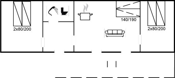 Ferielejligheden egner sig til 6 personer. Ferieboligen er på 59 m² og er bygget i 1972. I 2006 gennemgik ferieboligen en delvis renovering. Det er ikke tilladt at medbringe husdyr. Ferieboligen er udstyret med energibesparende varmepumpe. Ferieboligen har vaskemaskine. Frysekapacitet på 10 liter.