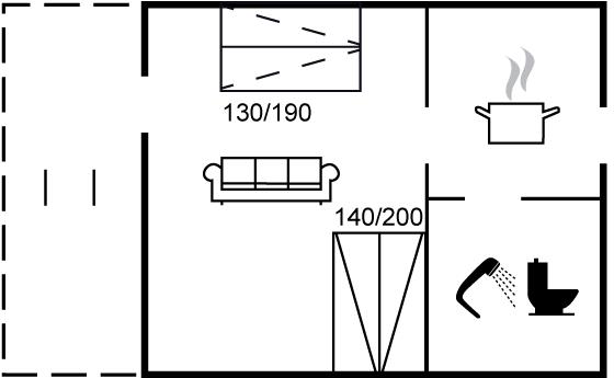 Sovepladserne fordeler sig på:2 sovepladser i dobbeltseng. 2 sovepladser i sovesofa (dobbelt).