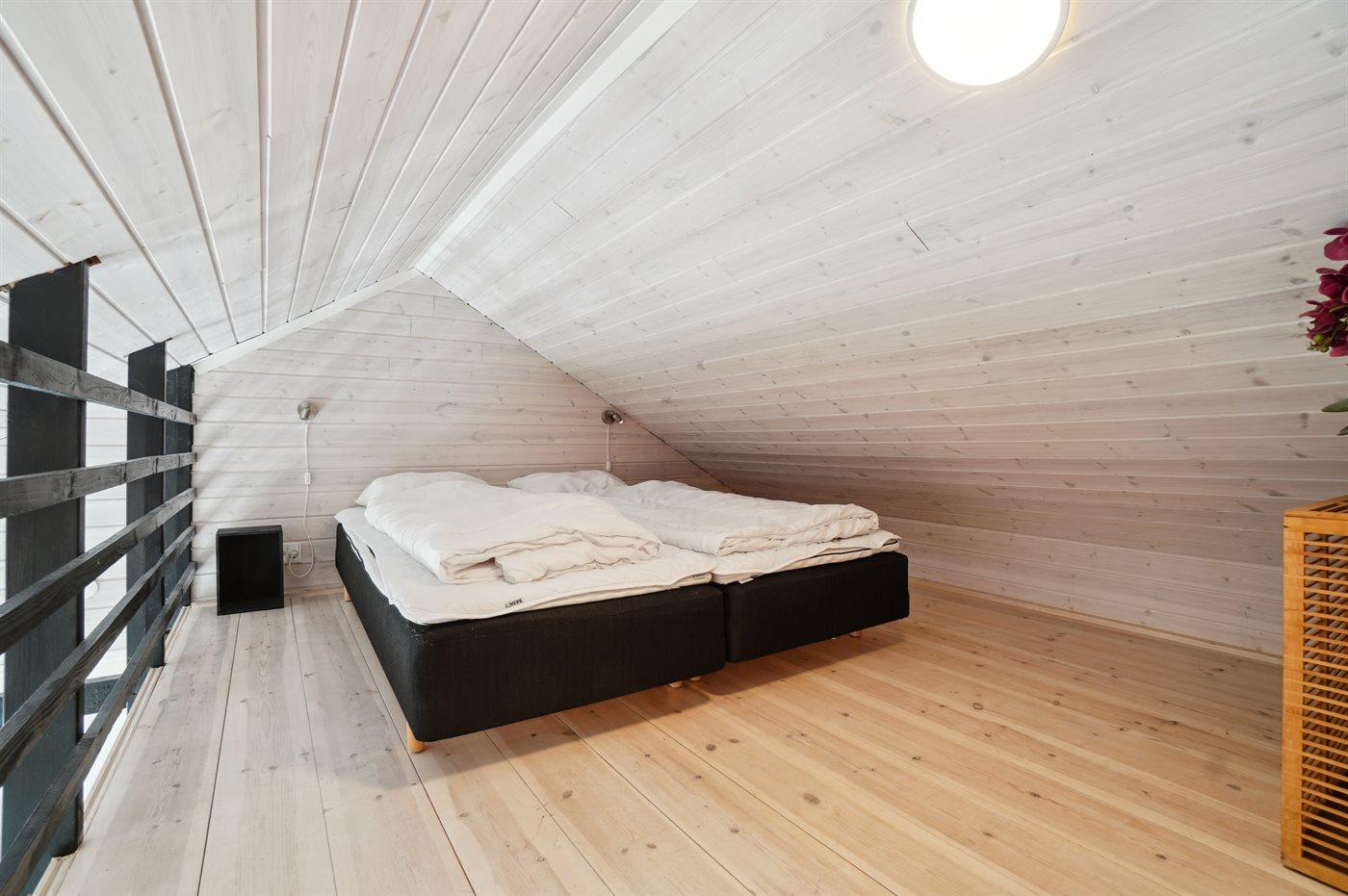 Sovepladserne fordeler sig på:2 sovepladser i dobbeltseng. 2 sovepladser i sovesofa (dobbelt). 2 af disse sovepladser befinder sig på husets hems og 2 i stuen.