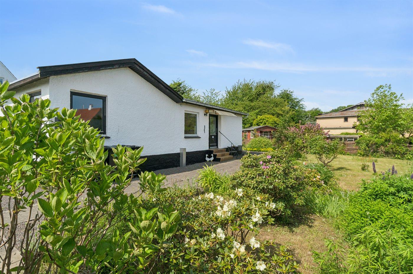 Stuen er husets største rum og her er der er god plads til hygge med familien – ønsker du derimod lidt mere fred og ro, så kan du sætte dig ud i udestuen for at læse en bog, strikke eller bare slappe af. Køkkenafdelingen fremstår moderne og der er god plads til kokkerere. Huset har to soveværelser og der findes en sovesofa i udestuen. Desuden er der et pænt og indbydende badeværelse.