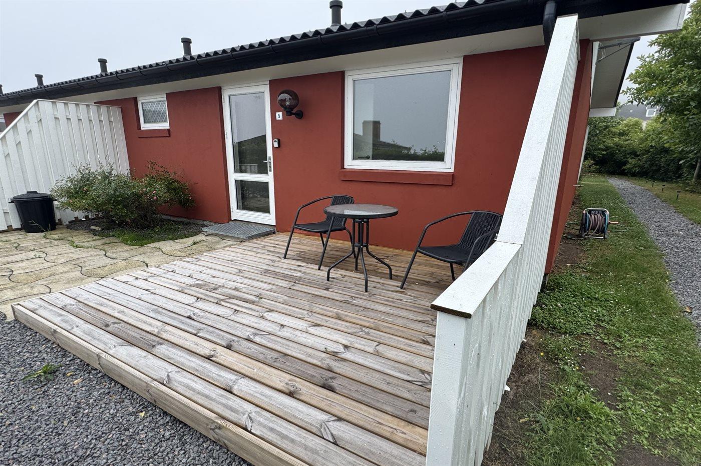 Ferieboligen er beliggende på en 50 m² stor naturgrund. Der er 300 m til havet. Nærmeste forretning er beliggende i en afstand af 1500 m. Til ferieboligen hører åbent terrasseareal. Desuden er der overdækket terrasse. Grill til rådighed. Der er installeret stik til opladning af elbil. Parkering ved ferieboligen.