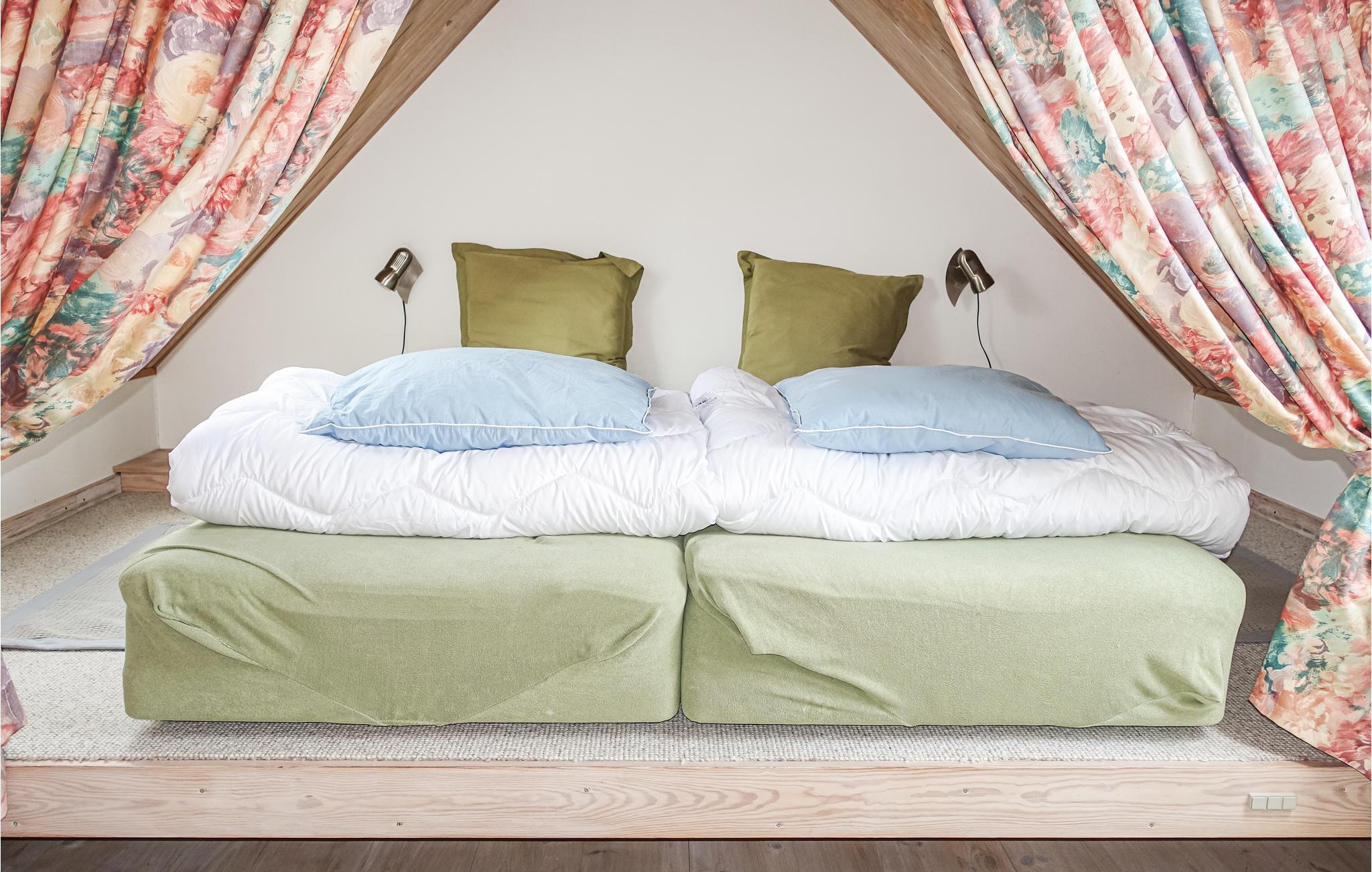 I stueetagen finder I stuen med spiseplads og det åbne køkken med vaskemaskine og brændeovn. Der er behagelig gulvvarme på badeværelset. På 1. sal finder I endnu et hyggeligt opholdsområde med fjernsyn samt boligens soveværelse med to gode boksmadrasser. Der er åbent til kip på 1. sal, hvilket skaber en rigtig hyggelig atmosfære.