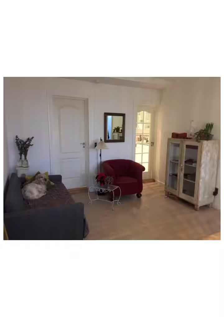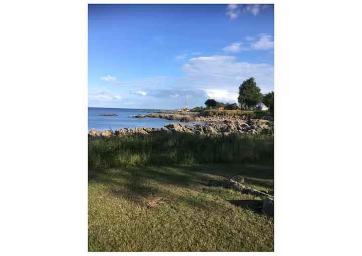 Et lille sted -men med storslået og fri udsigt over havet -Christiansø i det fjerne. Boligen ligger lige overfor Folkemødepladsen. Der er direkte adgang til terrasse og derfra til grønne områder og klipperne hvorfra man kan tage sig en dukkert og svømmetur langs kysten. Lejligheden er med soveværelse, stue og køkken og passer godt til en lille familie eller et par. Der er busholdeplads 100 m fra boligen -og 10 minutters gang til Sandvig og Allinge. Boligen Fri udsigt fra de store vinduer i stuen, der vender ud mod Østersøen - og hvor Christiansø viser sig i klart vejr, både dag og nat. Soveværelset vender ud mod haven med klipper, græs og lidt bevoksning. Der er morgen - og formiddagssol på terrassen - aftensol i haven. Køkken med go’ plads til madlavning. Badeværelse med toilet og brusekabine.