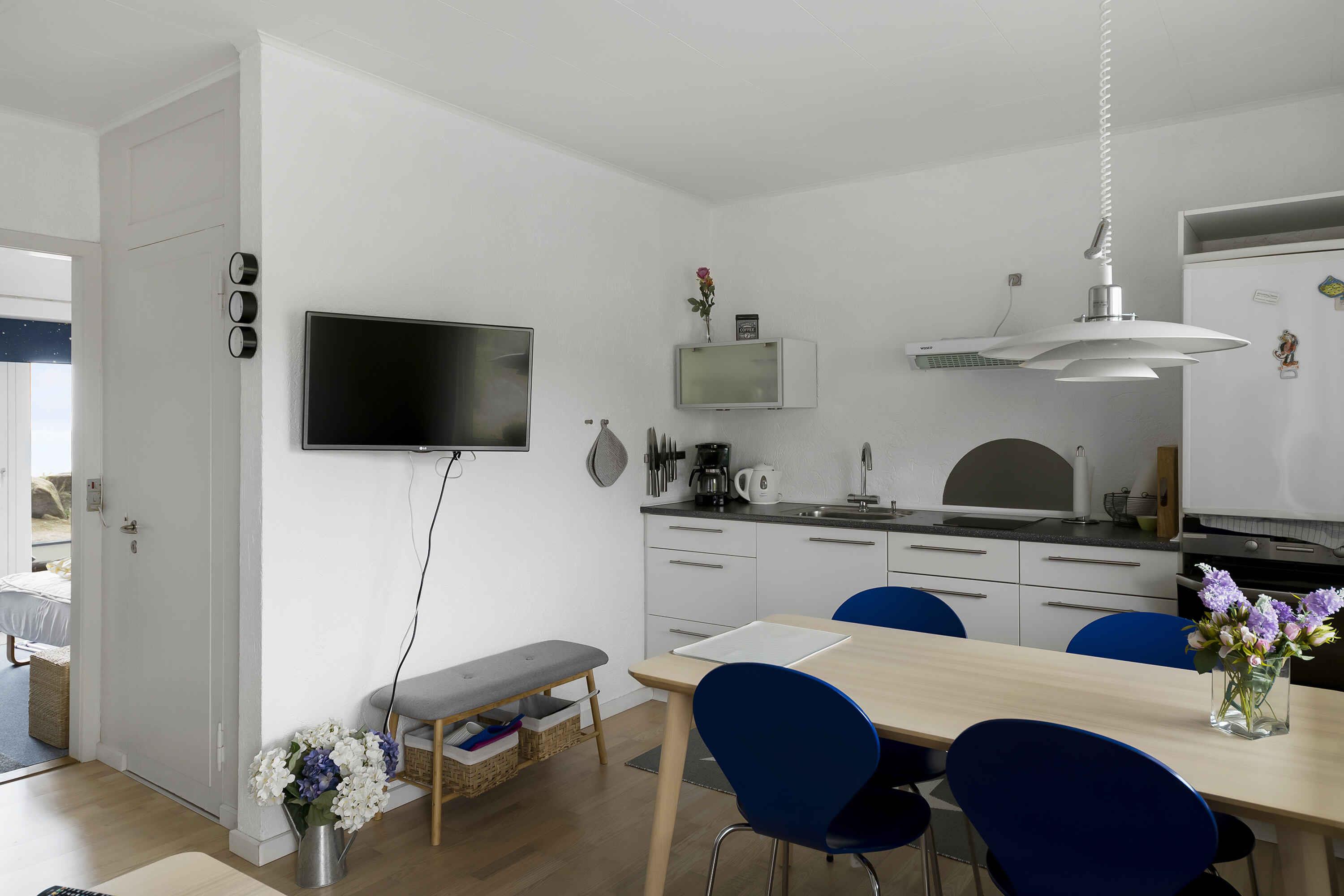 Denne charmerende lejlighed byder på en imødekommende atmosfære med en række unikke træk: De sydlandske, grovpudsede vægge tilføjer et strejf af rustik elegance, der giver lejligheden sin egen karakter. Lys strømmer ind i opholdsstuen, der smelter sammen med det åbne køkken, og skaber en behagelig plads til afslapning og samvær. Det hyggelige soveværelse er udstyret med en komfortabel dobbeltseng og åbner sig op til en solrig terrasse, hvor eftermiddagslyset inviterer til afslapning og forfriskende stunder. Det flisebelagte badeværelse tilbyder både funktionalitet og æstetik for en behagelig start på dagen. Med en varmepumpe, gratis internet og TV har du moderne bekvemmeligheder lige ved hånden. Derudover kan du drage fordel af fælles vaskeri, der er tilgængeligt mod betaling. Beliggende inden for gåafstand fra Allinge byder lejligheden på en ideel beliggenhed, hvor du kan udforske en verden af små butikker, charmerende caféer og spændende indkøbsmuligheder. Oplev de skønne omgivelser og aktiviteter, der omgiver dig - udforsk de lokale seværdigheder, tag på naturskønne vandreture langs kysten eller forkæl dine smagsløg med lækker lokal mad. Mulighederne er mange, og denne lejlighed er din komfortable base, mens du udforsker alt, området har at byde på. Obs, udlejes ikke til erhversmæssigt brug.