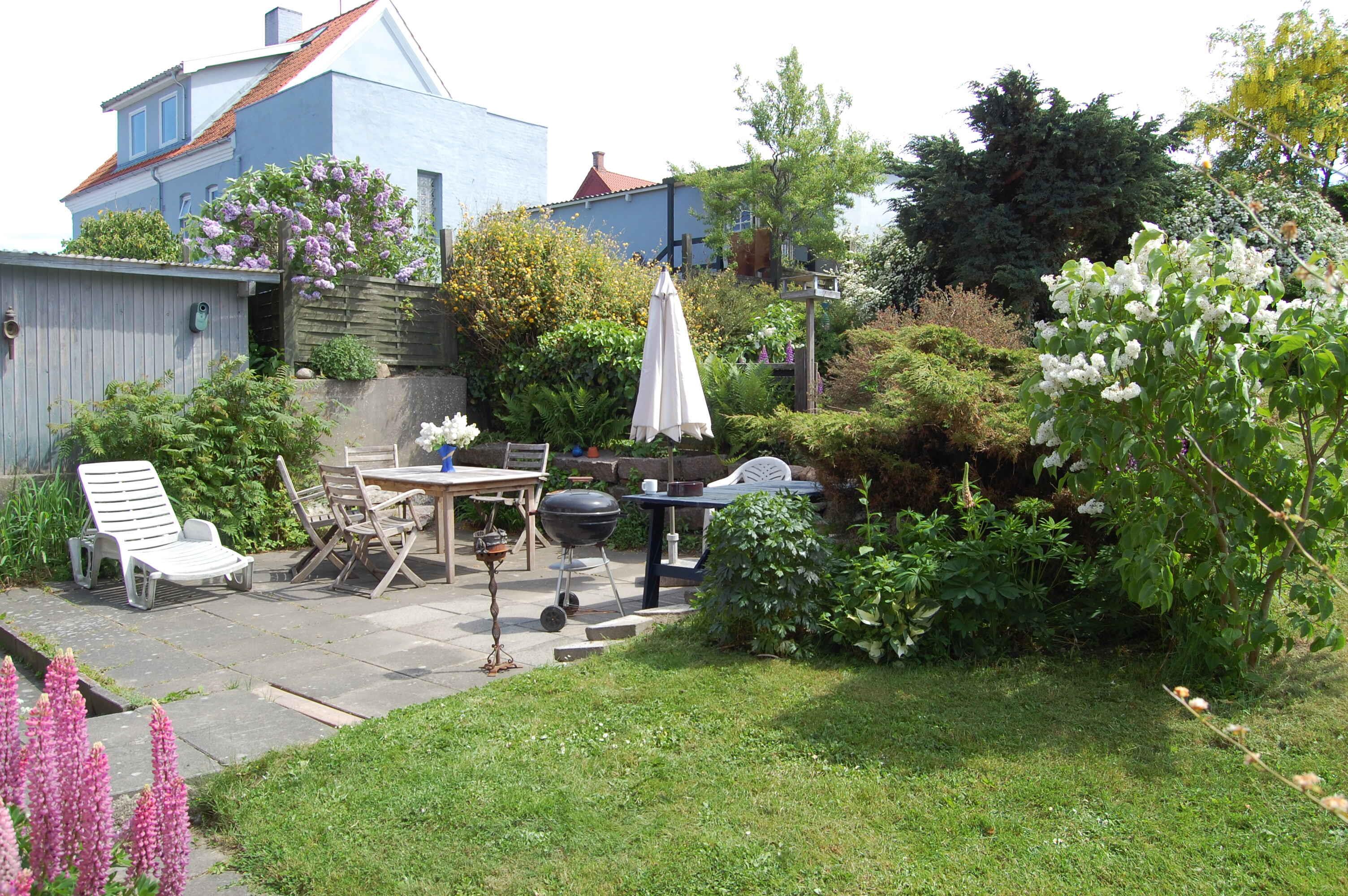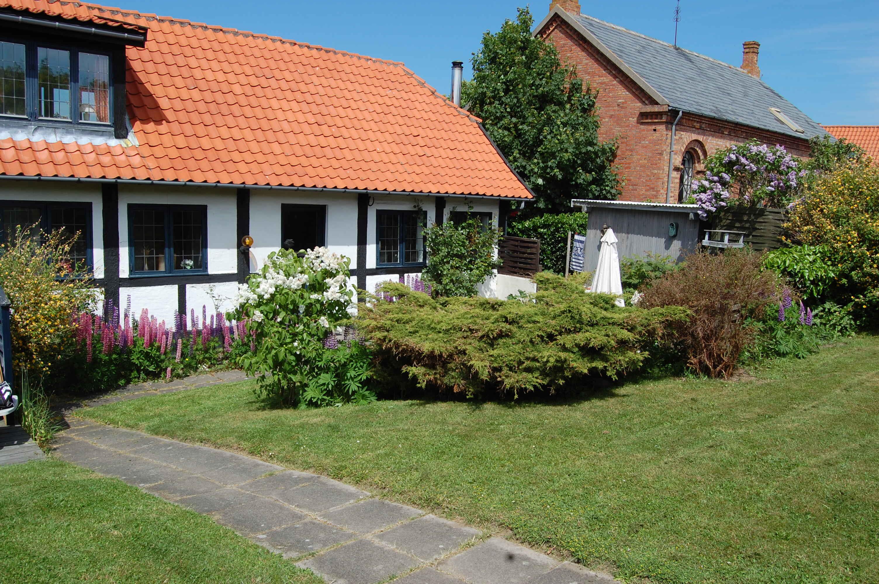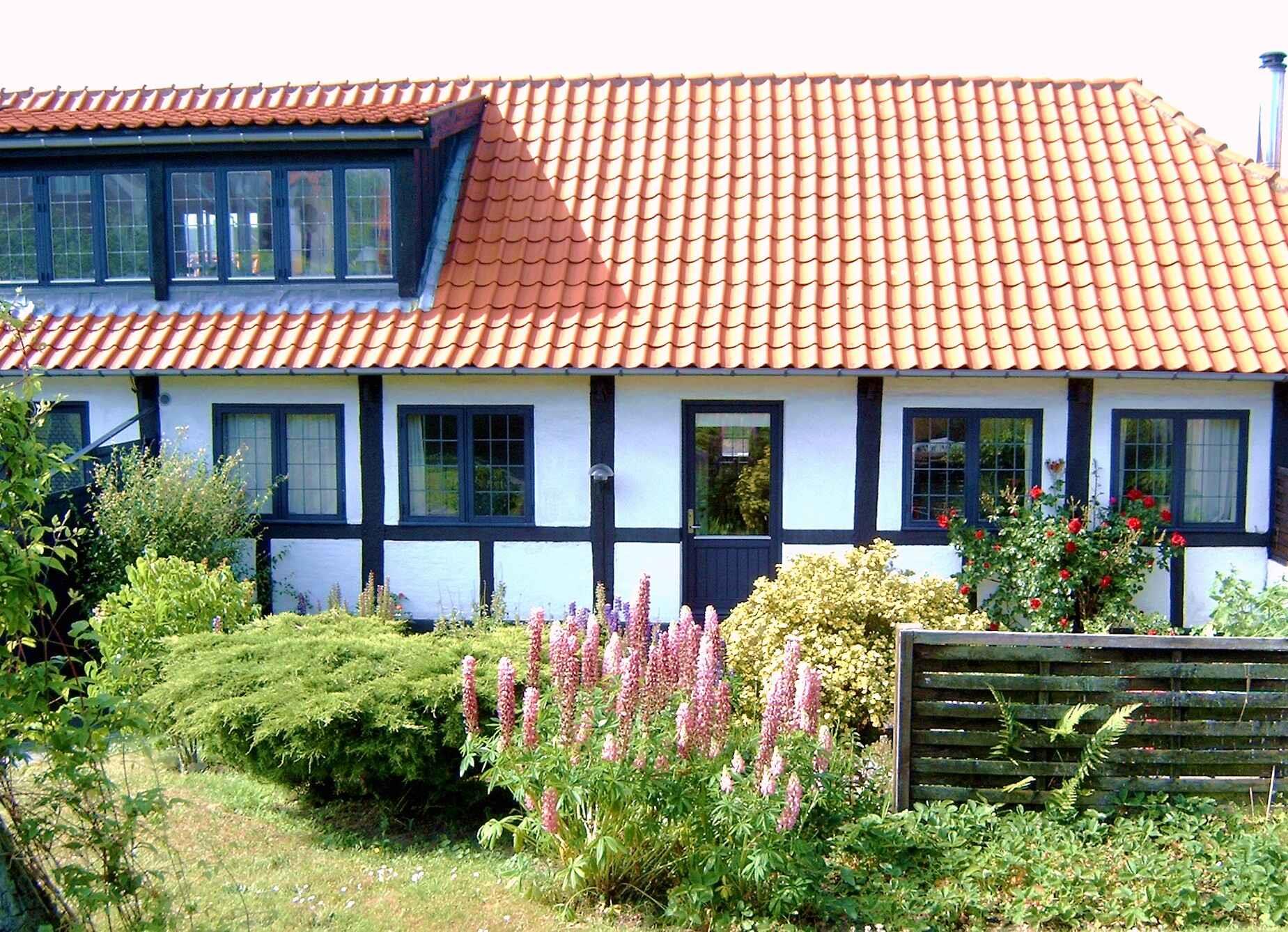 Skøn ferielejlighed i Sandvig med stor solterrasse, kort afstand til strand og udsigt til Opalsøens fjeldsider.