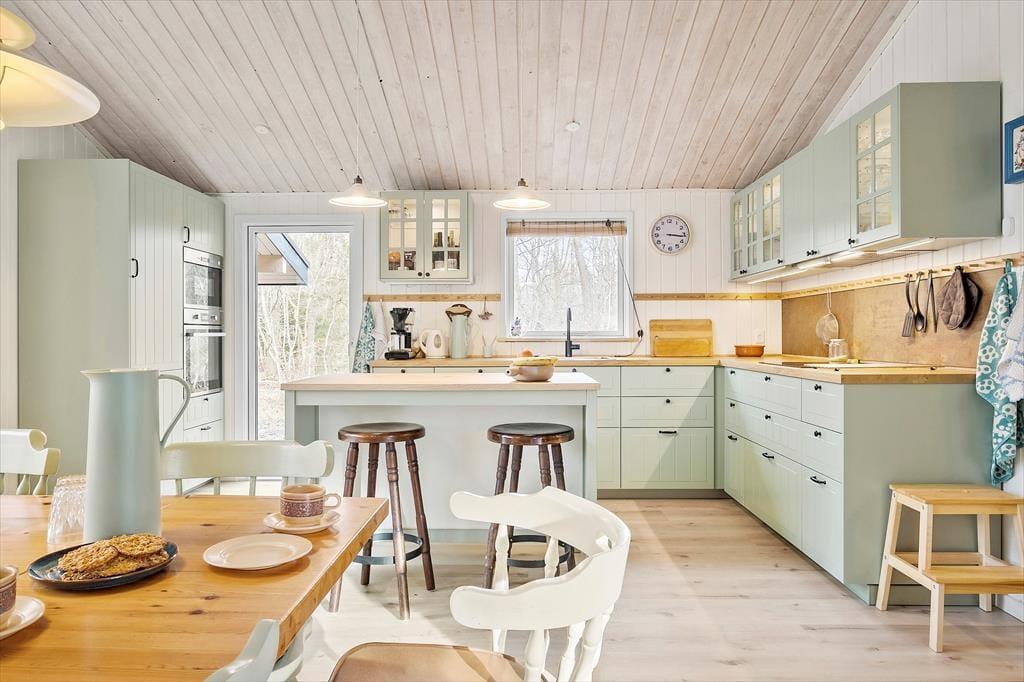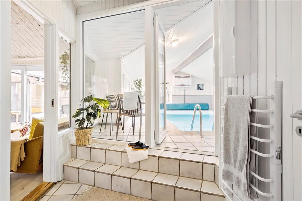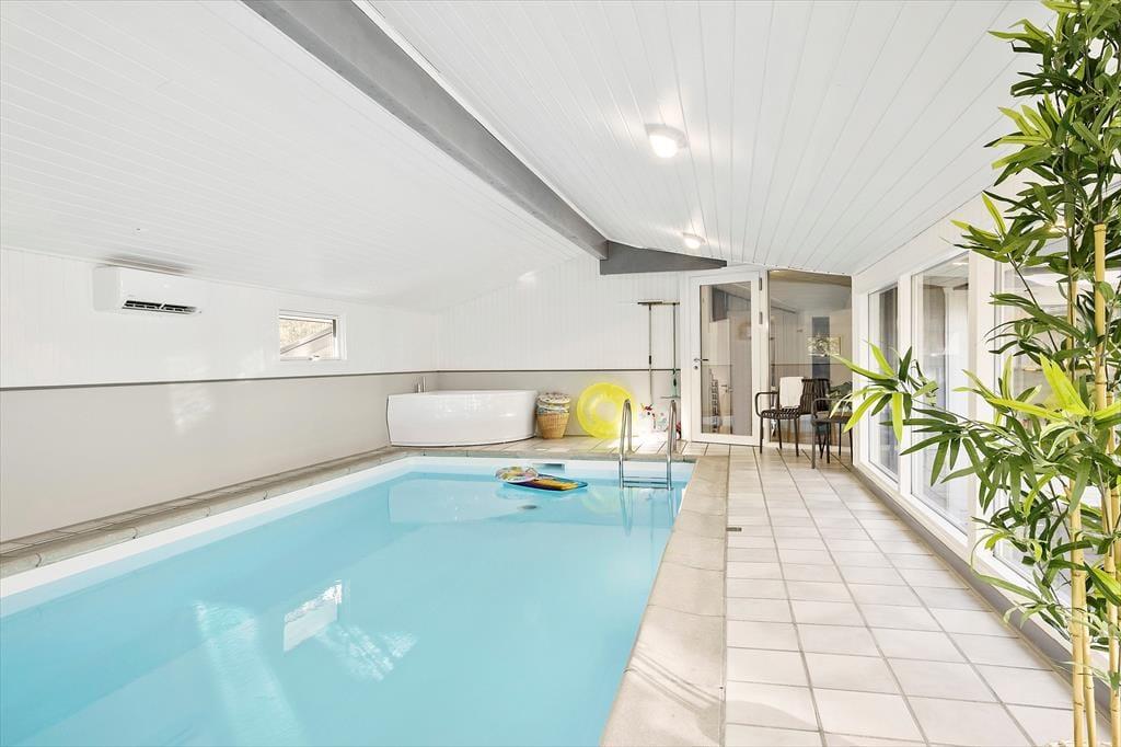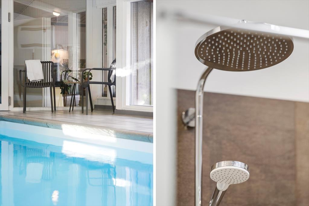 Med et sommerhus på hele 185 m2 har du god plads til at invitere venner og familie med på ferie. På de fem soveværelser er der plads til 10 personer, og den fornuftige planløsning gør blandt andet huset egnet til to børnefamilier – bemærk, at to af værelserne ligger i forlængelse af hinanden, så her har børnene mulighed for at sove tæt på forældrene. Alle rum fremstår pæne og indbydende, og ikke mindst opholdsrummet emmer af hygge og varme. Her er det nemt at forestille sig, hvordan I kan samles til fælles madlavning i det åbne køkken, brætspil i sofakrogen og lækre middage rundt om spisebordet. Mon ikke, I også kommer til at tilbringe en del tid i poolafdelingen med at svømme rundt, slappe af i spabadet eller varme jer i saunaen.