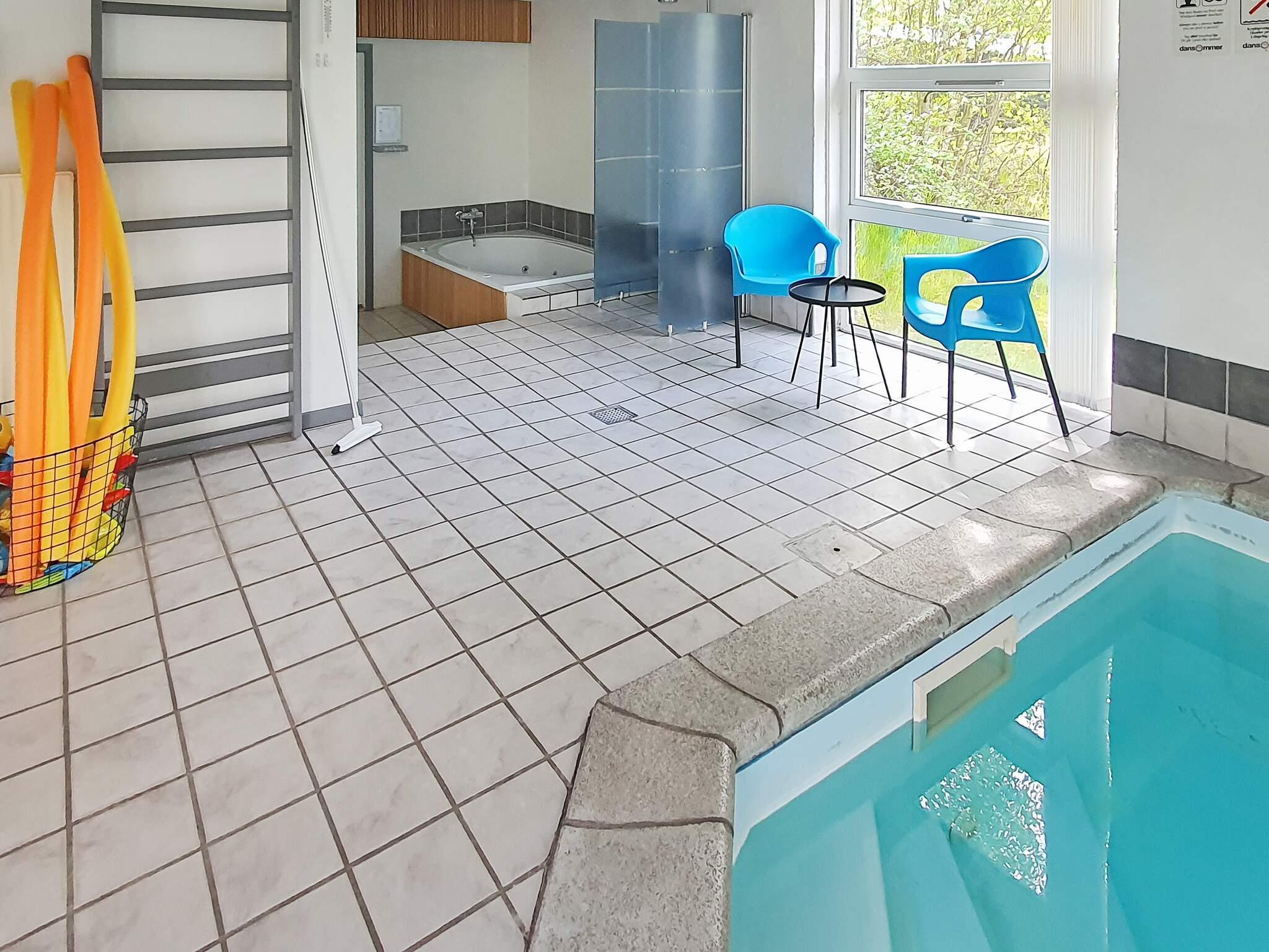 Der er stort poolområde med 22 m2 swimmingpool med en spansk trappe til poolen samt spabad og stor sauna til afslapning og varme.