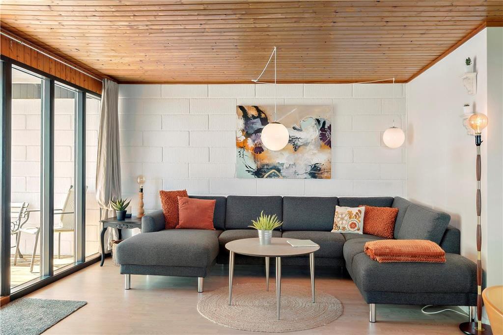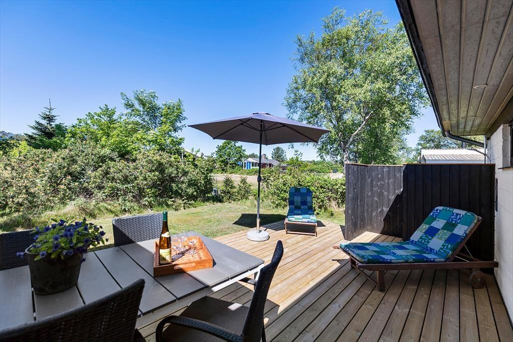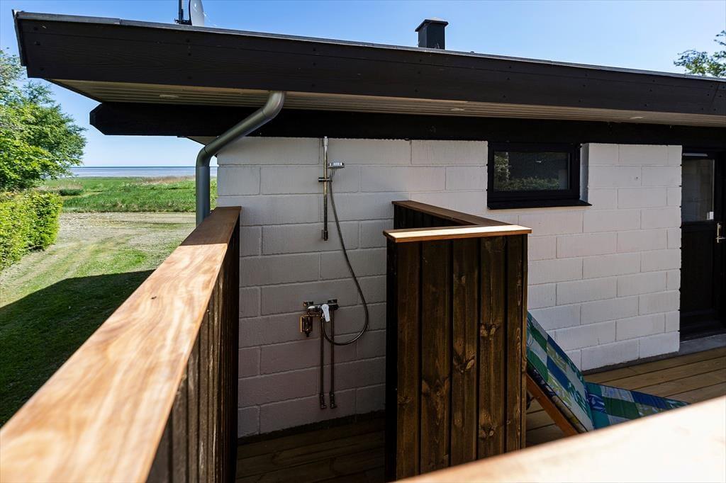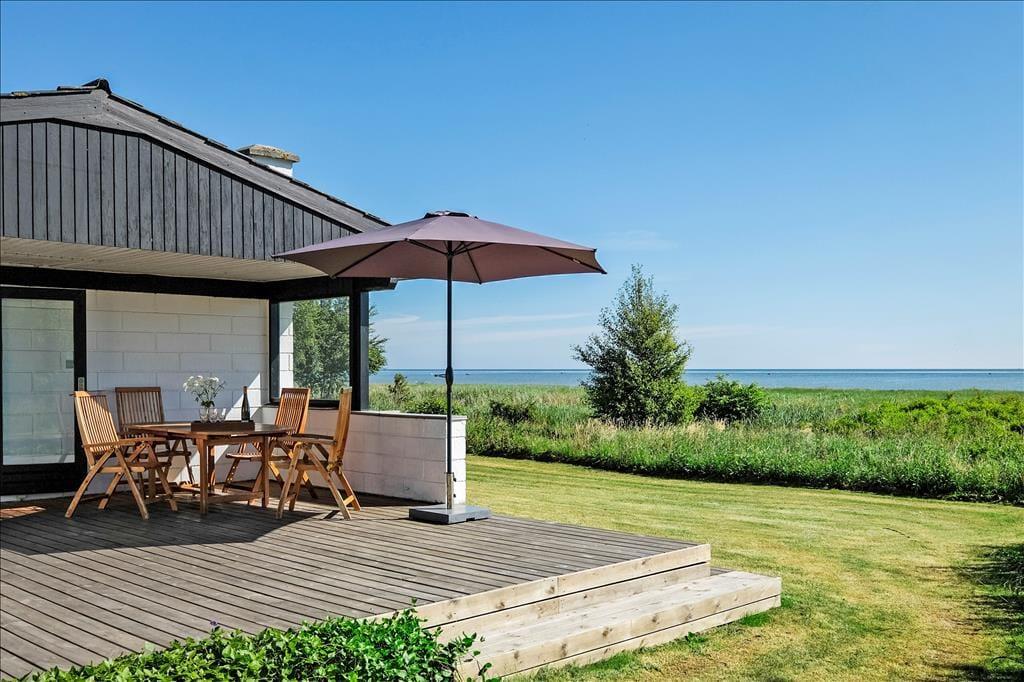 På den 1141 m2 store grund kommer både leg og afslapning til at foregå i de smukkeste rammer. Når I sidder og soler jer på den delvist overdækkede, sydvendte træterrasse, kan I skue ud over kattegatkysten, og det samme gælder, når I spiller bold eller havespil på græsplænen. Nord for grunden fører en sti lige til stranden, så hvis I trænger til at strække benene efter grillmiddagen, kan I hurtigt smutte helt ned til vandkanten.