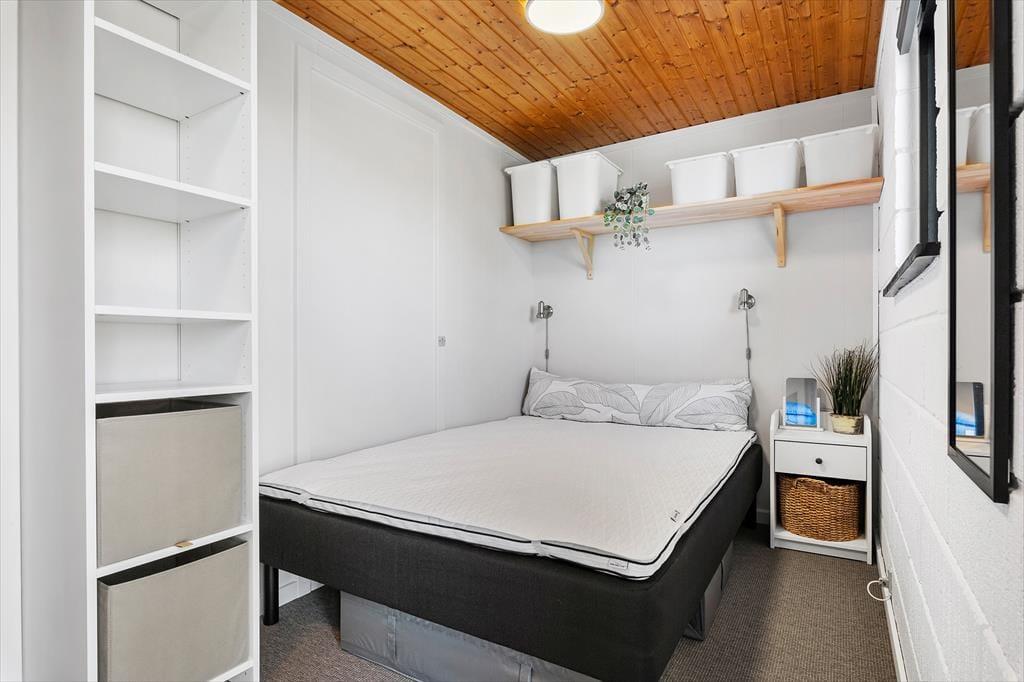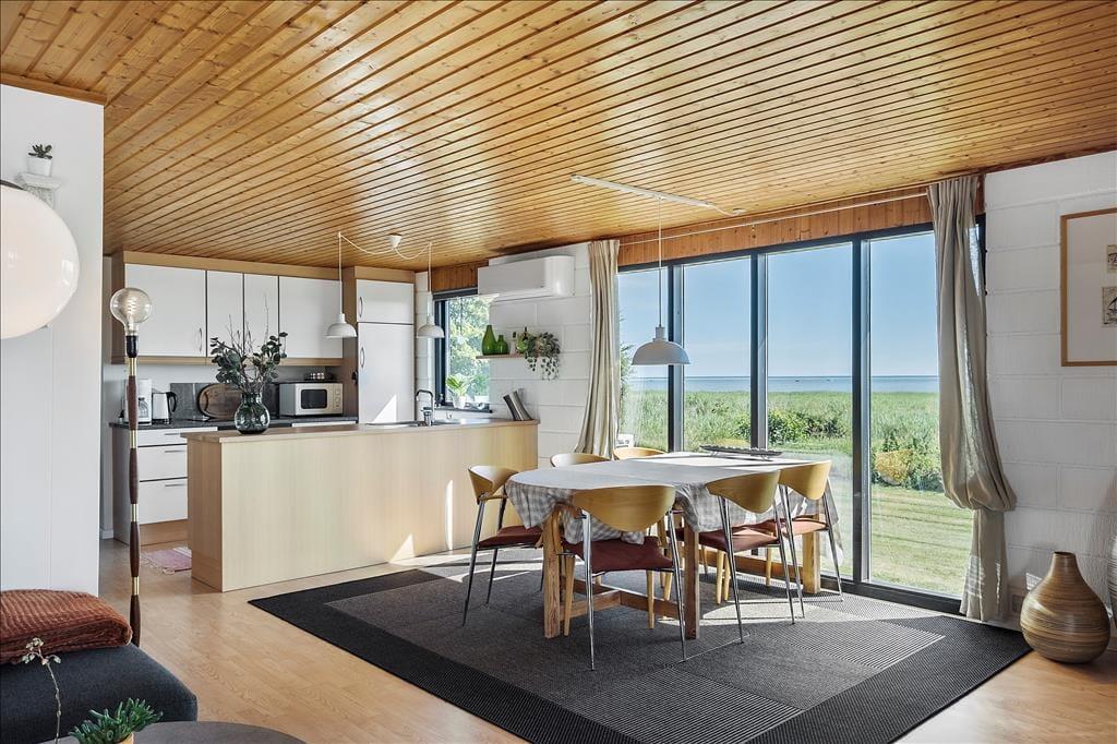 Når I bor i første række til Kattegat, kan morgenkaffen ledsages af den flotteste solopgang over vandet, mens I langsomt vågner og bliver klar til feriedagens små og store begivenheder. Takket være opholdsrummets store vinduespartier har I fri udsigt over kystlandskabet, uanset om I hygger jer i sofaafdelingen, sidder omkring spisebordet nær pille ovnen eller kokkererer i den åbne, veludstyrede køkkenafdeling. På de to soveværelser kan I se frem til en god nats søvn på de nyindkøbte komfortable madrasser. Et badeværelse hører naturligvis også med til planløsningen, og som en praktisk detalje er der vaskemaskine i entréen.