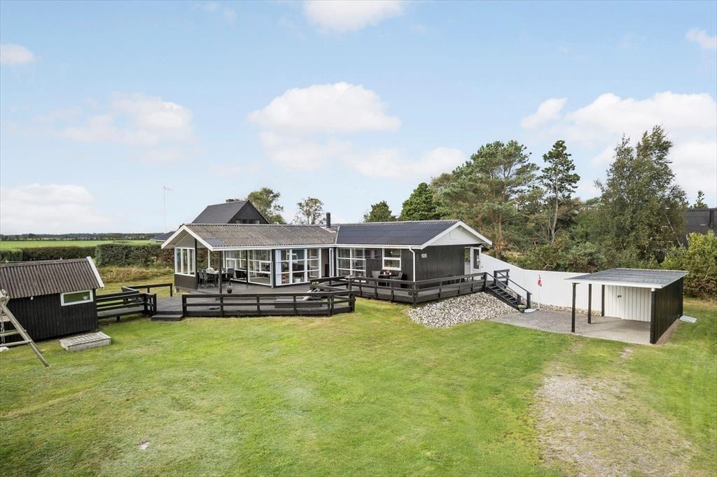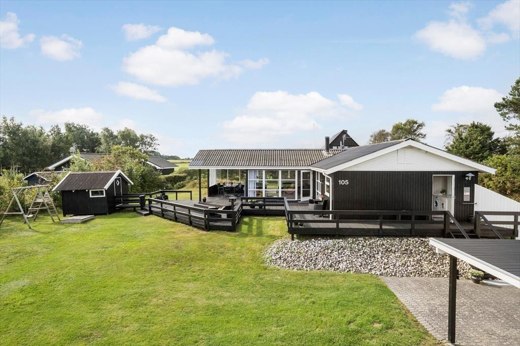 Hvis ferien skal bruges på både leg og afslapning, skal I kigge nærmere på dette dejlige sommerhus, der er udstyret med alt lige fra brændeovn og sauna til fodboldmål og mooncar