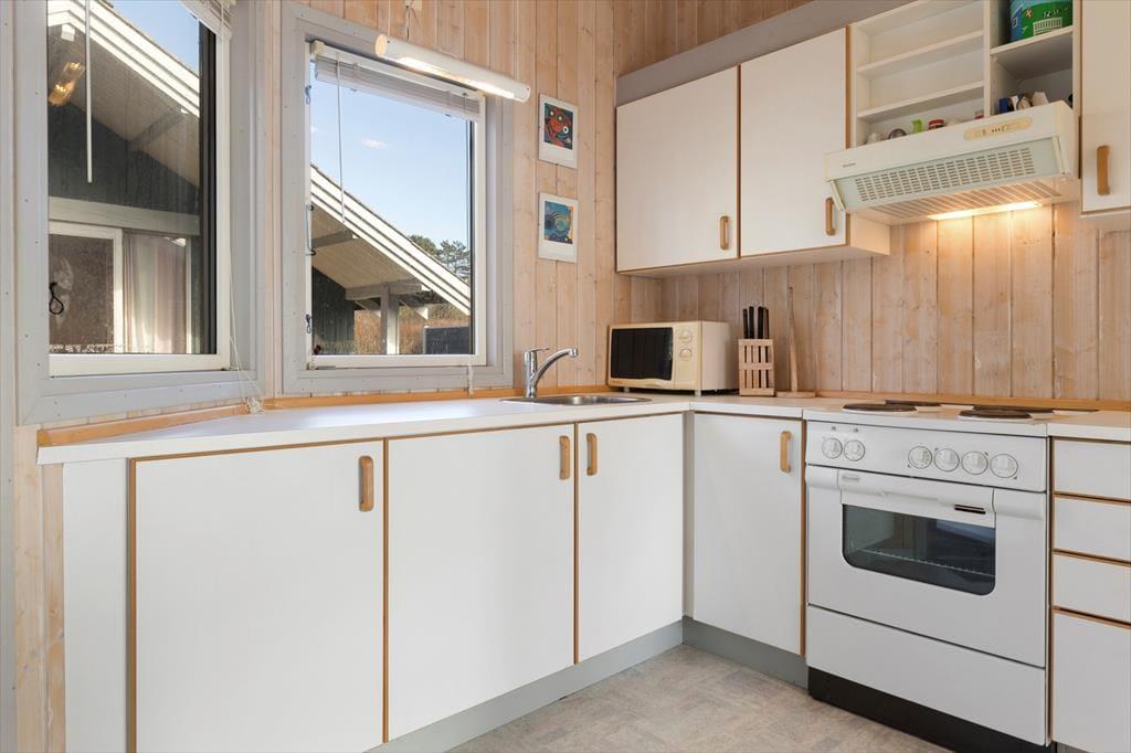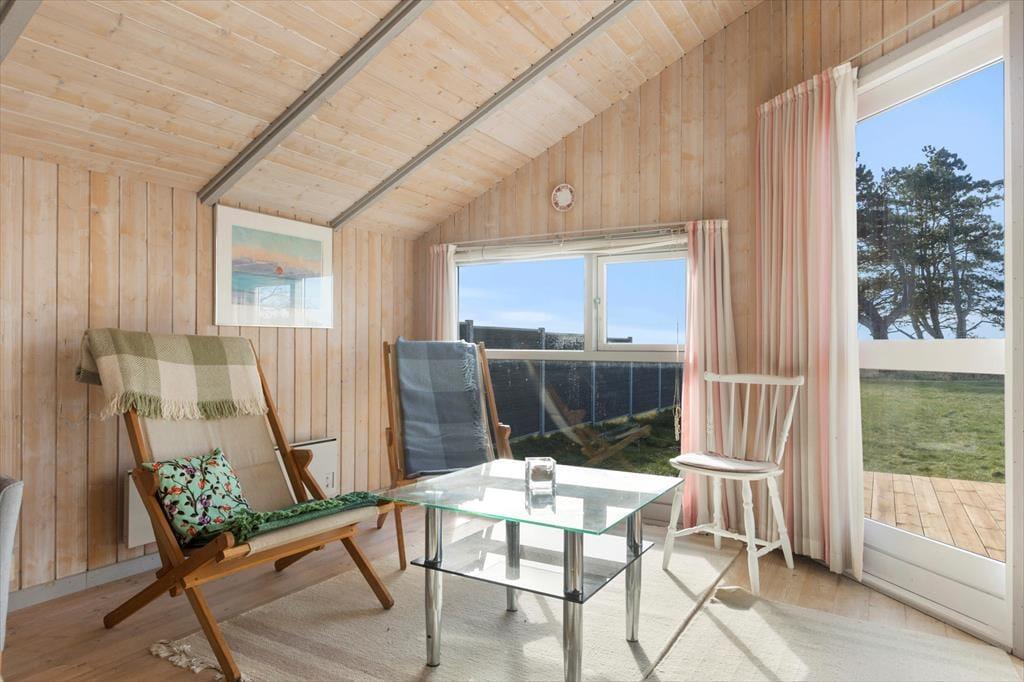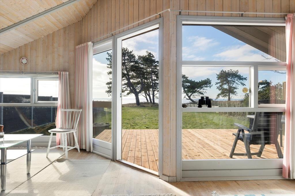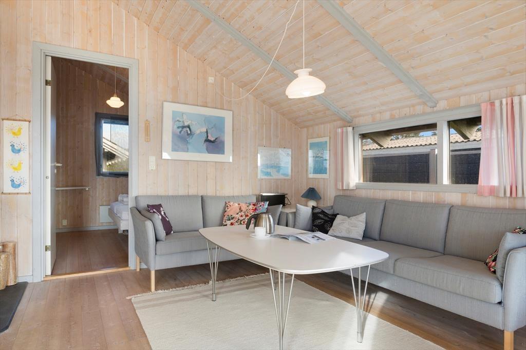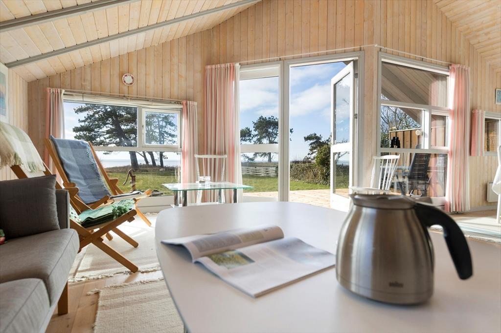 Når du træder indenfor i sommerhuset, mødes du straks af en varm og hyggelig stemning. De lyse rum, de komfortable møbler og den åbne planløsning inviterer til afslapning og samvær. Her er masser af plads til at nyde ferien i ro og mag. Den store stue er perfekt til hyggelige aftener med brætspil, film eller en god samtale, mens du nyder varmen fra brændeovnen på de køligere dage. Det åbne køkken og spisepladsen giver mulighed for at lave lækre måltider sammen, mens du kigger ud på den fantastiske udsigt over vandet.