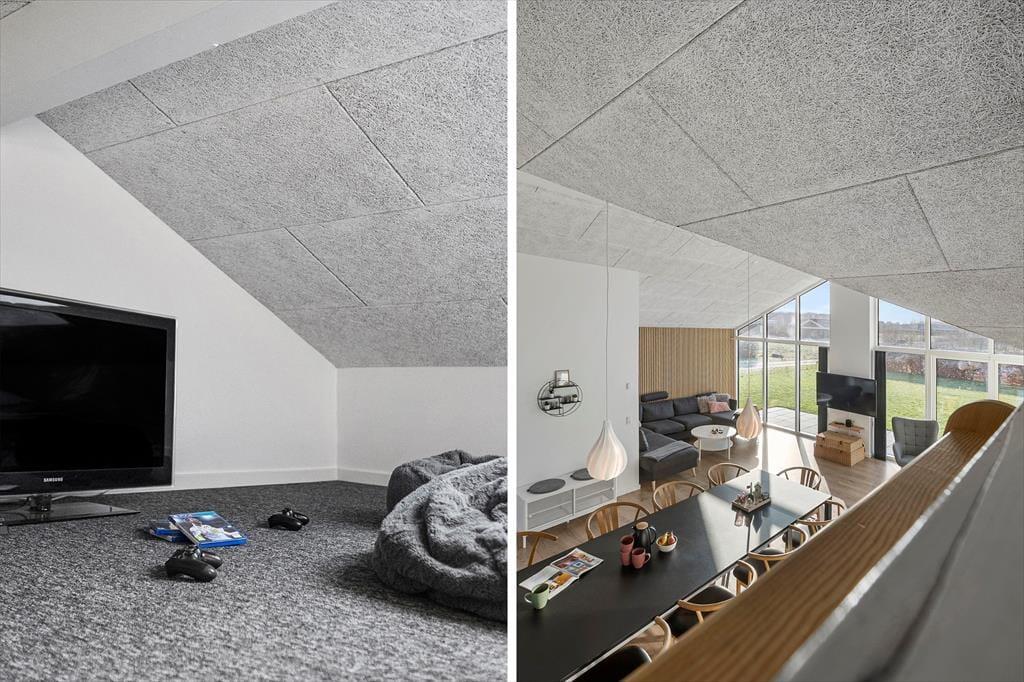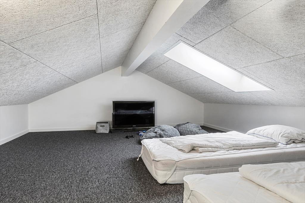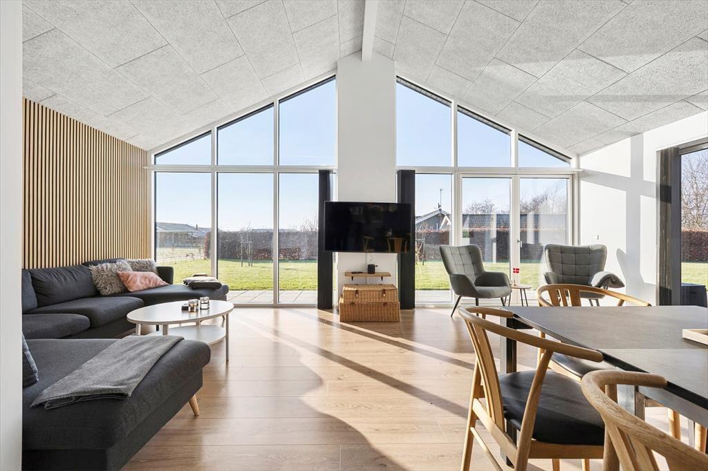 Når du træder indenfor, vil du straks mærke den behagelige atmosfære, som præger dette feriehus. Det høje loft i kip i kombination med det naturlige lys gør rummet lyst og venligt, og du vil hurtigt finde dig til rette i de åbne opholdsrum, hvor samtaler, spil og feriehygge kan fortsætte uforstyrret. Køkkenet og stuen ligger i naturlig forlængelse af hinanden, hvilket gør det nemt at være sammen – uanset om du laver mad, dækker bord eller slapper af i sofaen efter en dag på stranden. De velvalgte detaljer og indretning i skandinavisk stil skaber en rolig og behagelig ramme for ferien, hvor du kan nyde stille morgener med kaffe i hånden og summende forventning om dagens oplevelser. Selvom huset har plads til flere gæster, bevarer det en intim og hjemlig stemning, hvor alle kan finde deres favoritsted at slappe af.