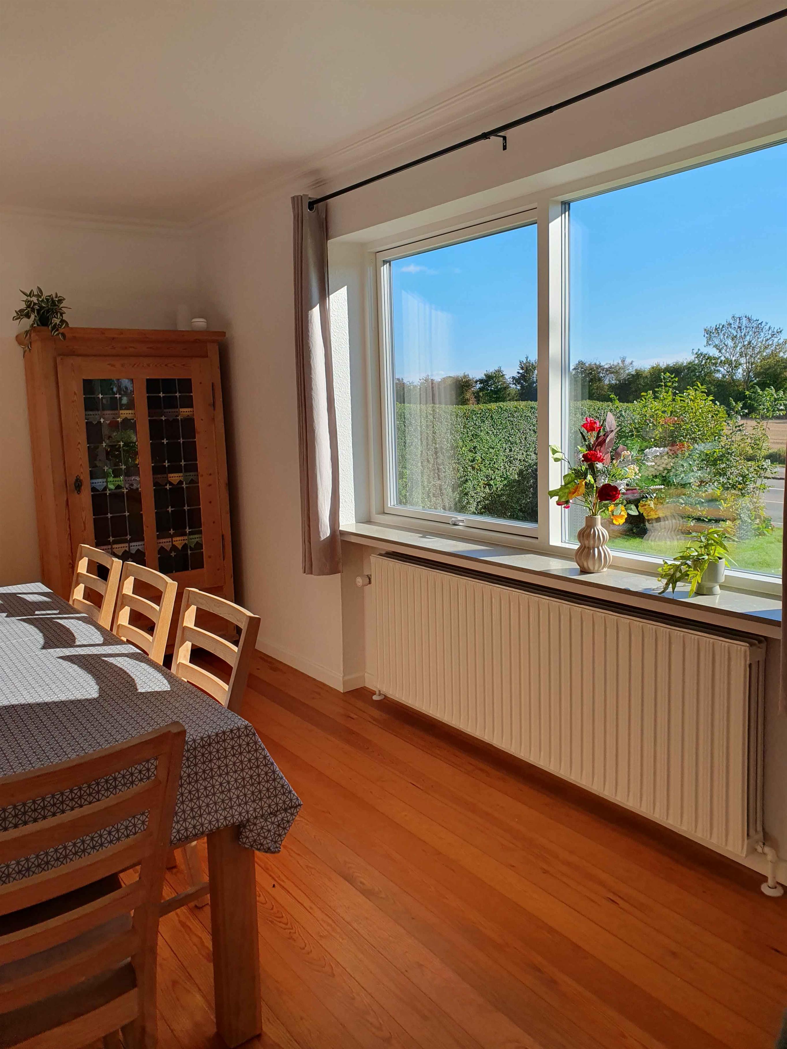 Dejligt feriehus på 100 m² og fordelt på to plan. Der er 6 sovepladser fordelt med et soveværelser i stueplan og 2 soveværelser på 1. sal , hvilket gør huset velegnet til både familier og mindre grupper. Alle værelser er udstyret med tv – i stuen og i værelset i stueplan er der både satellit-tv og smart-tv, mens værelserne på 1. sal har almindeligt tv. Fra 1. sal kan man ane udsigten til Hørup Hav og Dybbøl Mølle. Desuden er der i stuen en brændeovn, som giver en behagelig atmosfære. I stueplan finder du et praktisk gæstetoilet, et moderne badeværelse fra 2025, køkken, spise- og tv-stue samt en lille baggang med pille brændeovn. Derudover er der et soveværelse i stueplan, så huset kan benyttes uden at skulle op på første sal – ideelt for gæster med lette gangbesvær, selvom huset ikke er fuldt handicapvenligt. Indretningen er funktionel og gennemtænkt, så både korte og længere ferier bliver behagelige og nemme for alle. Der er en stor møbleret, overdækket terrasse, som må benyttes af rygere, samt et drivhus, der er omdannet til en hyggelig udestue, hvor der IKKE må ryges. Grunden er idyllisk med udsigt over marker både foran og bagved. Offentlig transport findes tæt på, og der er indkøbsmuligheder ca. 4 km i begge retninger. Området er kendt for sin rolige atmosfære og gode rammer for udendørs aktiviteter. Skove og stier inviterer til vandreture, løb og cykelture, mens åbne marker giver et indtryk af lys og plads. For naturelskere er her mange muligheder tæt på boligen. Til kysten er der 7 km, og her møder du lange strande med fint sand og lavt vand. Området er oplagt for børnefamilier, men også for voksne, der ønsker strandture, badning eller afslappende gåture langs havet. Den korte afstand gør det let at kombinere skov og strand i ferien. Als byder på smukke kyststrækninger med gode fiskemuligheder fra både kyst og havne samt mange historiske og kulturelle seværdigheder. I nærområdet finder du små havne og lokale spisesteder, hvor frisk fisk og egnsretter kan nydes. Der er desuden mulighed for at opleve kulturhistoriske seværdigheder, museer og små landsbyer med charmerende miljøer. Kombinationen af natur, kultur og lokale oplevelser giver ferien flere dimensioner. Her får du en feriebolig, der samler komfort og enkel funktionalitet med adgang til et område fyldt med oplevelser. Uanset om ønsket er ro, aktiviteter i naturen eller kulturelle indtryk, giver huset en god base for en ferie med plads til både samvær og afslapning.