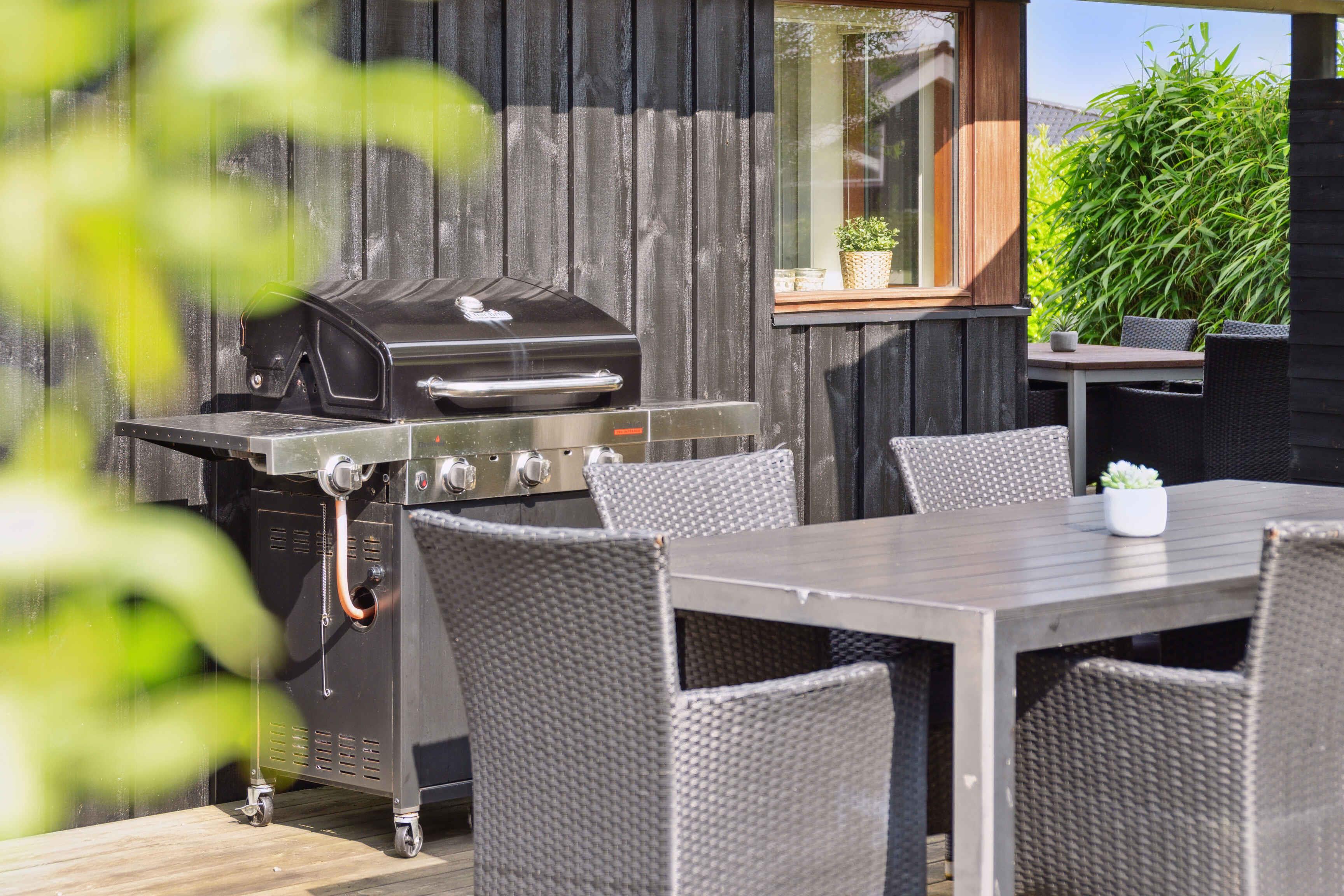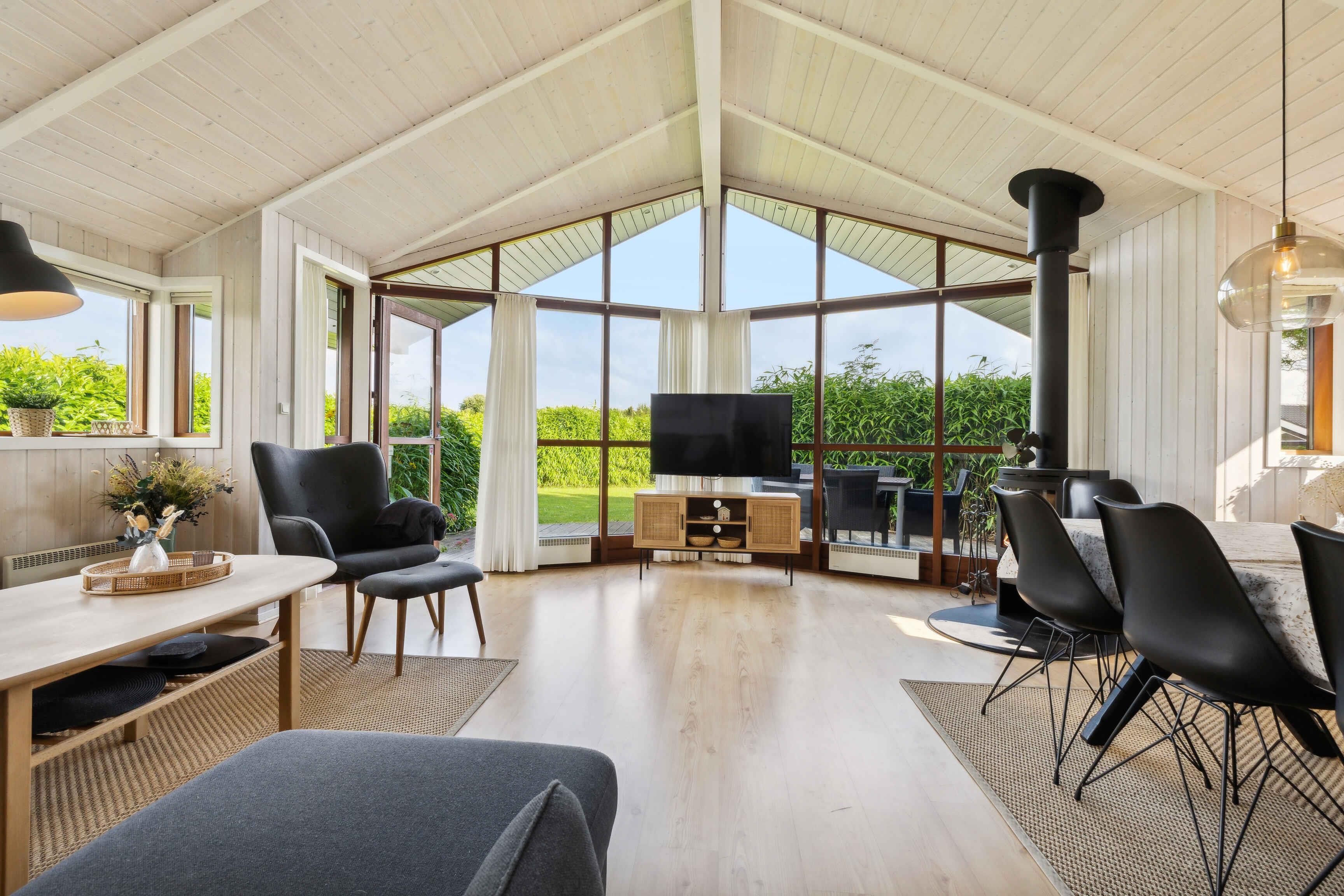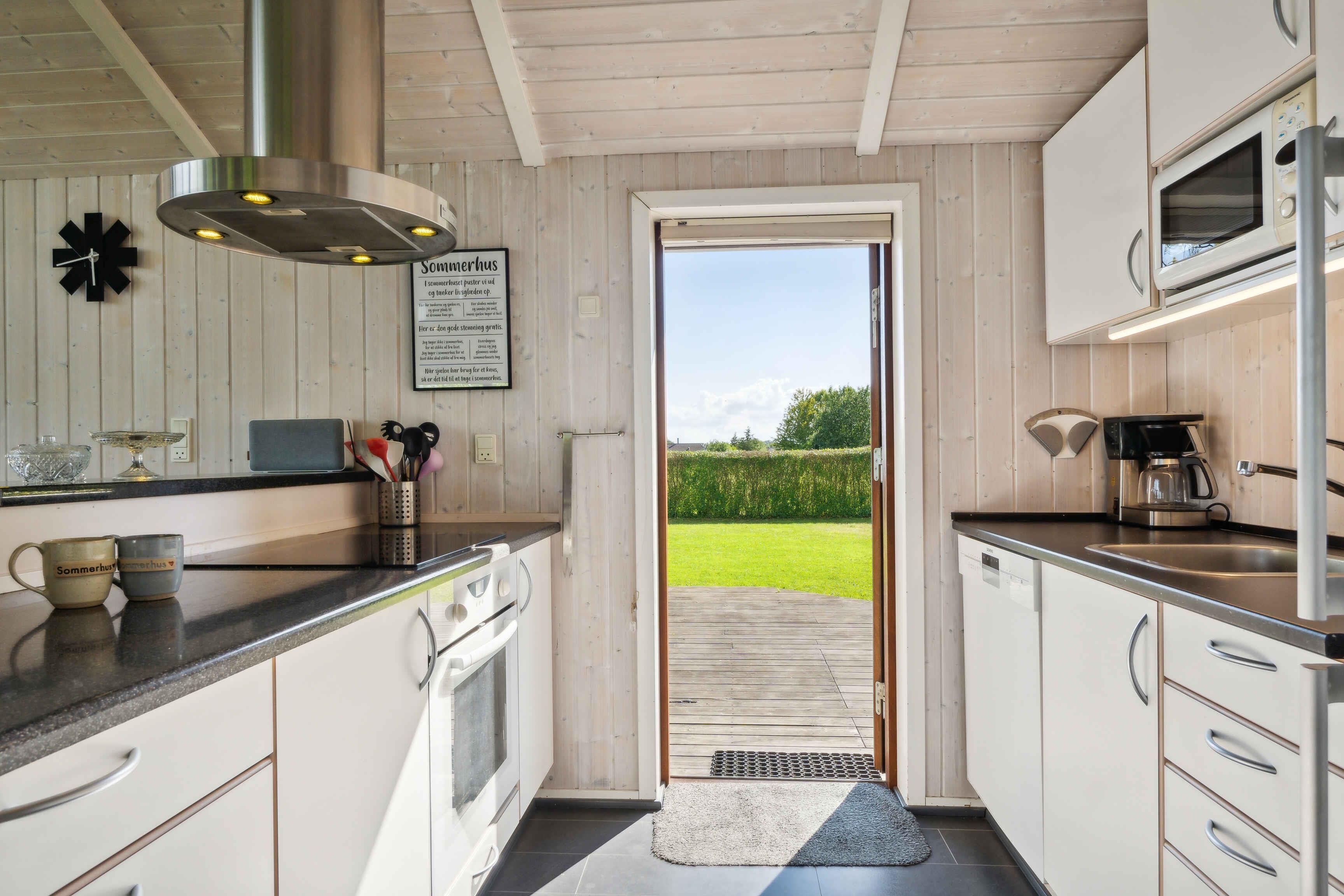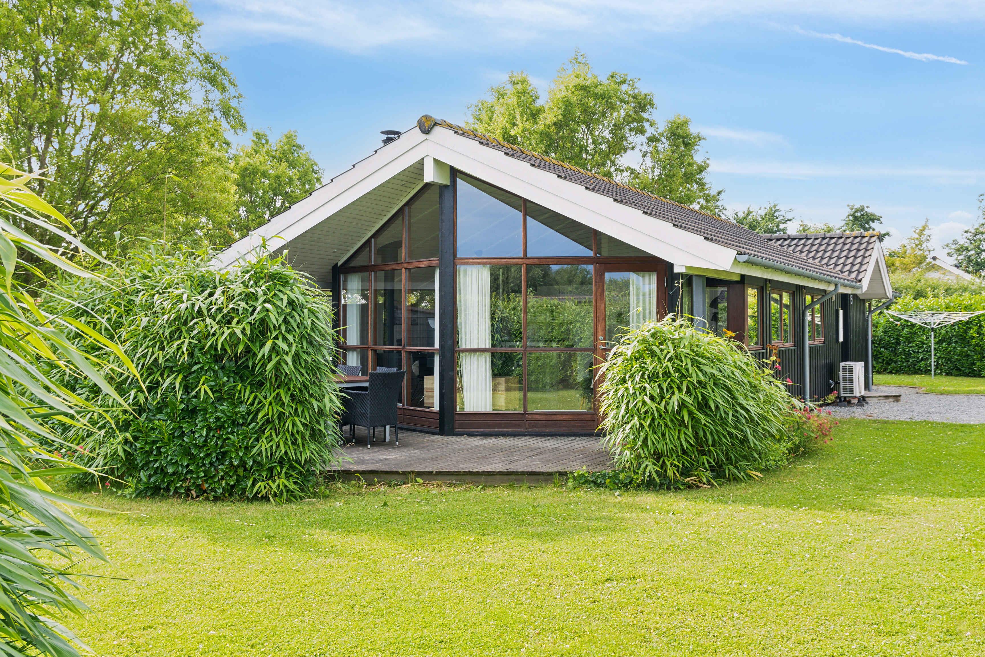 Hyggeligt sommerhus ved Skovmose på Als med spa, store vinduer, børnevenlig have og tæt på strand.