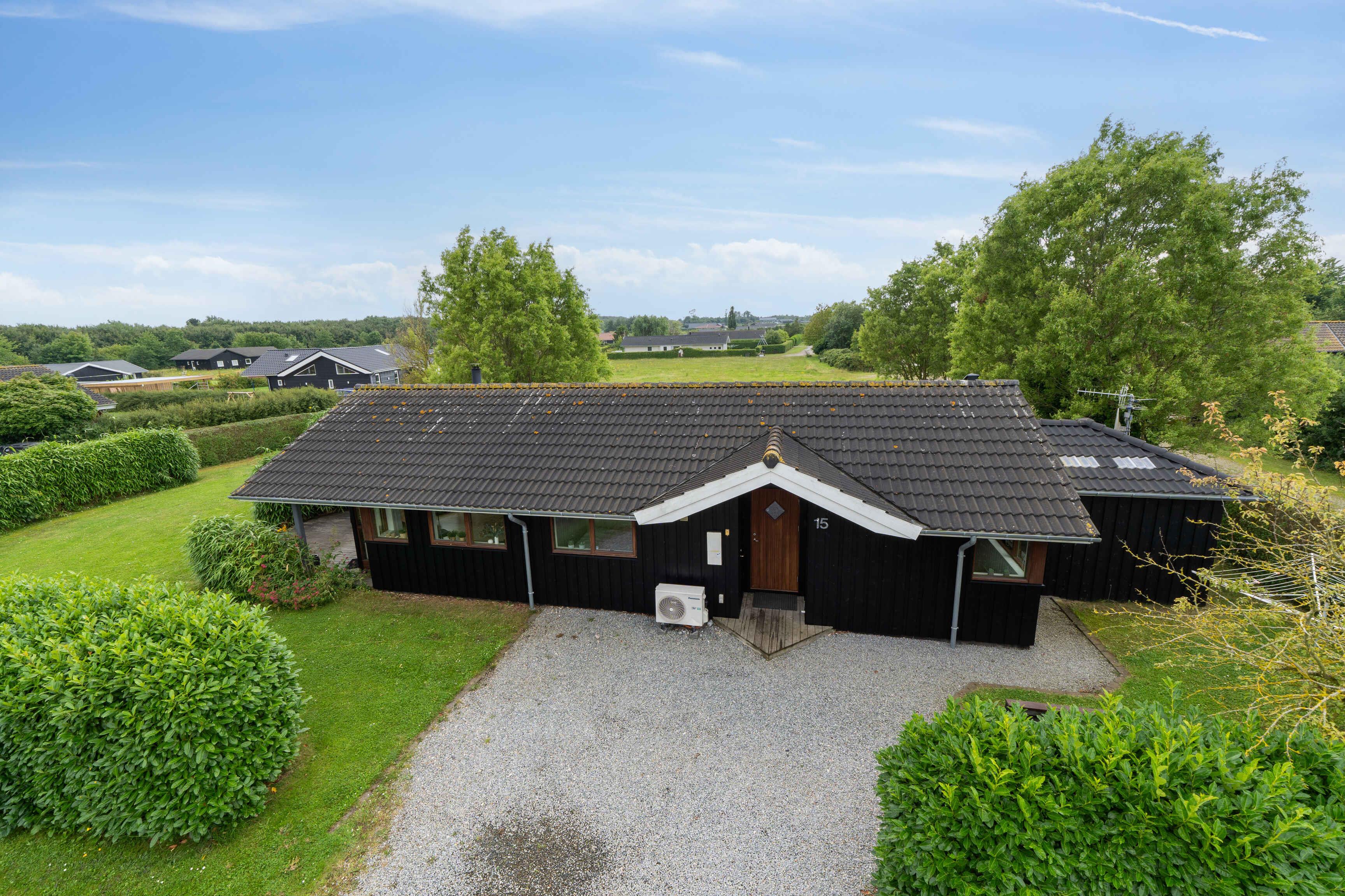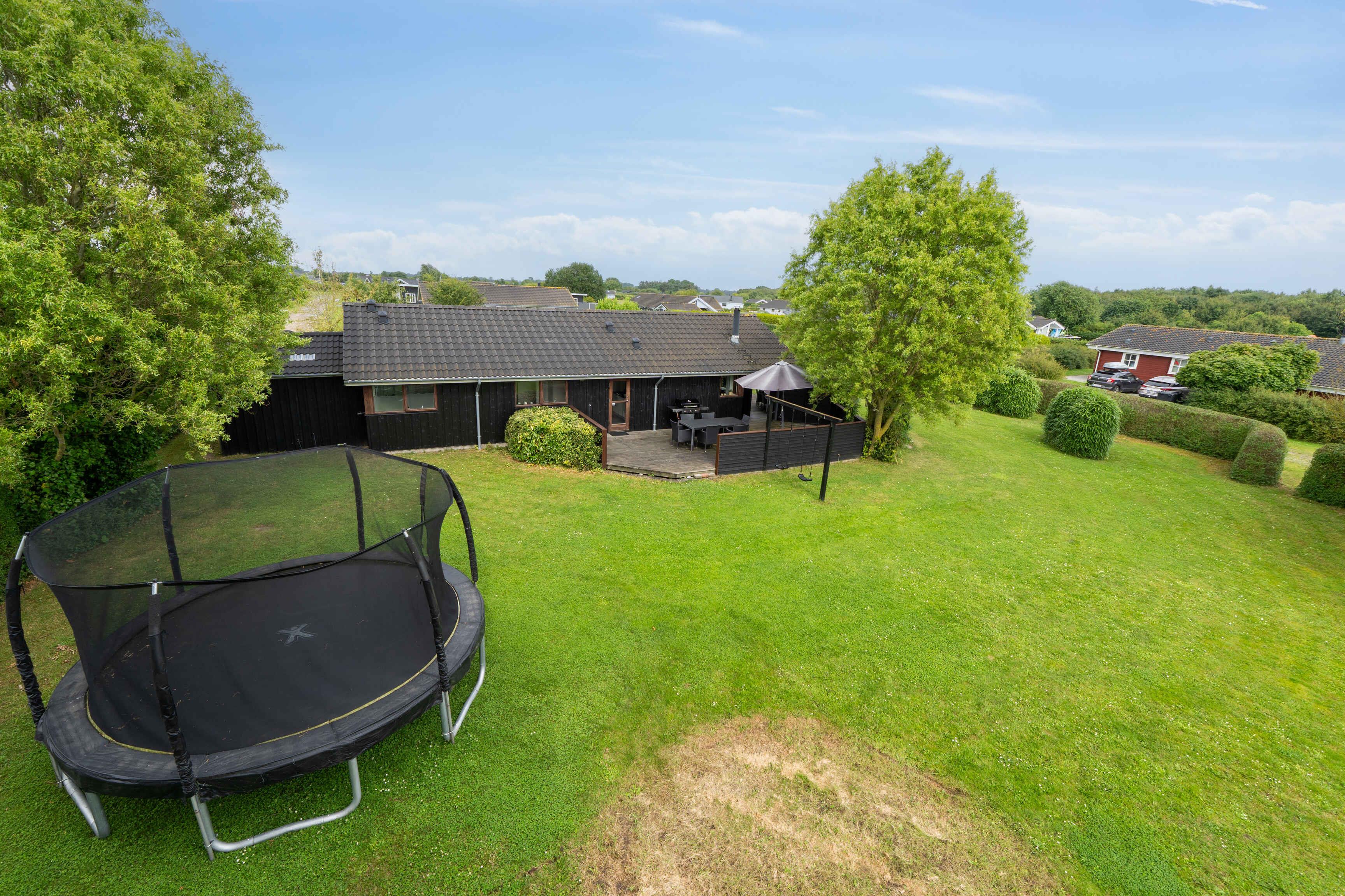 Velkommen til dette vidunderlige sommerhus, som er det perfekte sted for en afslappende ferie med familie og venner. Sommerhuset er velindrettet og byder på en hyggelig atmosfære med moderne faciliteter, der sikrer komfort og bekvemmelighed året rundt. Inde i sommerhuset finder I en dejlig indendørs spa, hvor I kan slappe af og lade op efter en dag fyldt med aktiviteter. De store vinduespartier lader dagslyset strømme ind og skaber en lys og luftig atmosfære i hele huset. Fra stuen har I en fantastisk udsigt til den omkringliggende natur, hvilket giver en følelse af at være tæt på naturen, selv når I er indendørs. Den rummelige have er en sand oase for både børn og voksne. Her er der masser af plads til leg og aktiviteter, og I kan nyde de lange sommeraftener med udendørs middage, grillfester og hygge omkring bålpladsen. Haven er designet til at være børnevenlig, så de små kan lege frit og sikkert. For de vandglade er den børnevenlige strand, der ligger i kort gåafstand fra sommerhuset, et absolut højdepunkt. Stranden er ideel til bade- og stranddage, hvor I kan bygge sandslotte, samle muslingeskaller og nyde havets brusen. Sommerhuset er udstyret med en luft/vand varmepumpe, der sikrer en behagelig temperatur uanset årstid. På køligere dage kan I tænde op i den hyggelige brændeovn, som spreder varme og skaber en dejlig stemning i stuen. Det åbne køkken-alrum gør det nemt at samles om madlavningen, og her er alt, hvad I behøver for at tilberede lækre måltider. Soveværelserne er indrettet med komfortable senge og god skabsplads, så I kan føle jer hjemme og få en god nats søvn. Badeværelserne er moderne og veludstyrede, og spaområdet byder på ekstra luksus og velvære. Uanset om I søger en aktiv ferie med udendørs oplevelser eller en rolig tid med afslapning og hygge, er dette sommerhus det ideelle valg. Obs, udlejes ikke til erhversmæssigt brug.