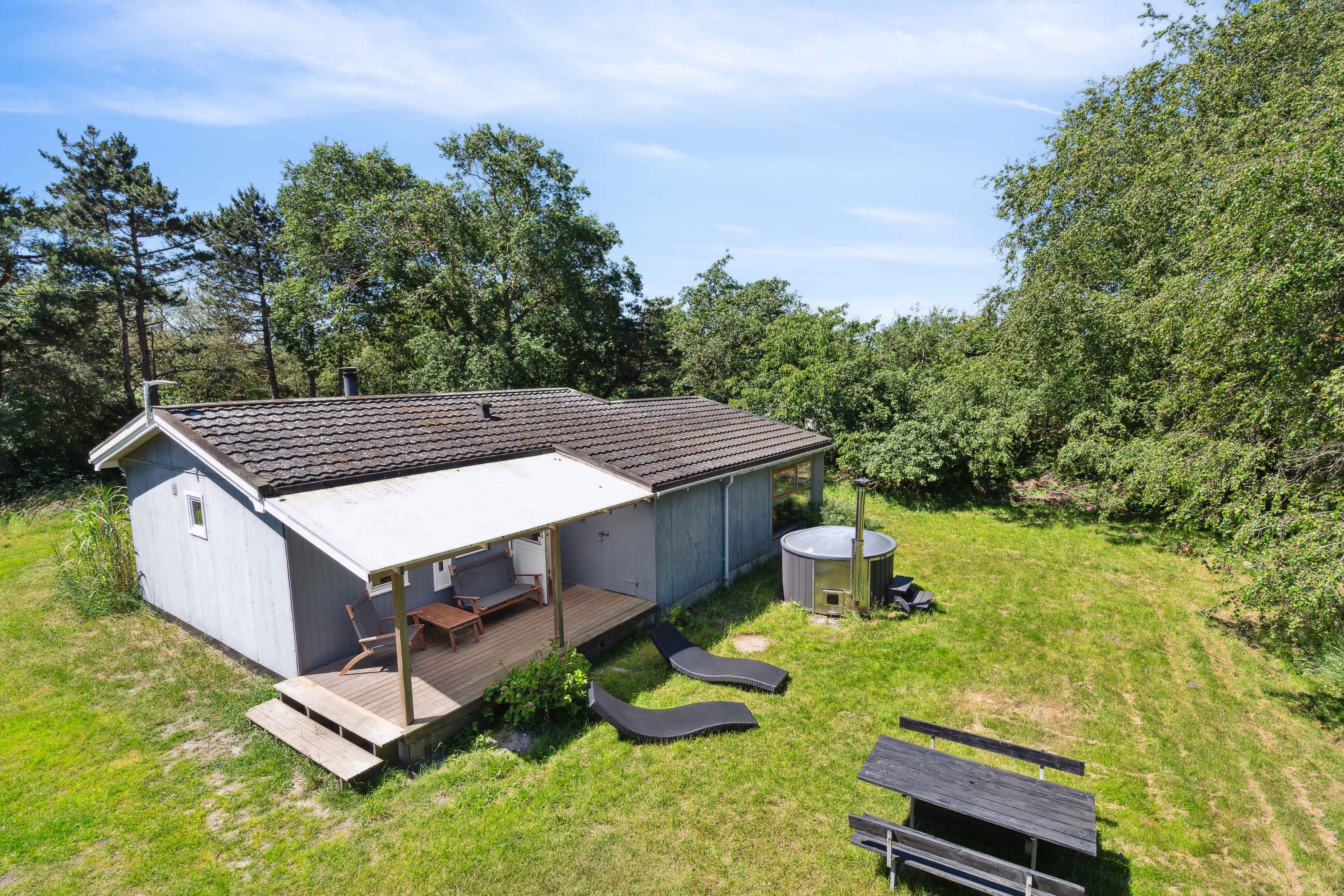 Hyggeligt feriehus med strand og vildmarksbad