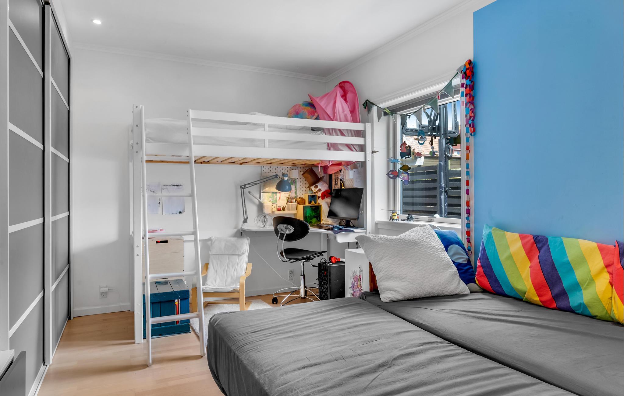 Soveværelse (nr. 2) - 2 Sovepladser. (Dobbeltseng(e)). 1 Soveplads. (Etageseng(e)).