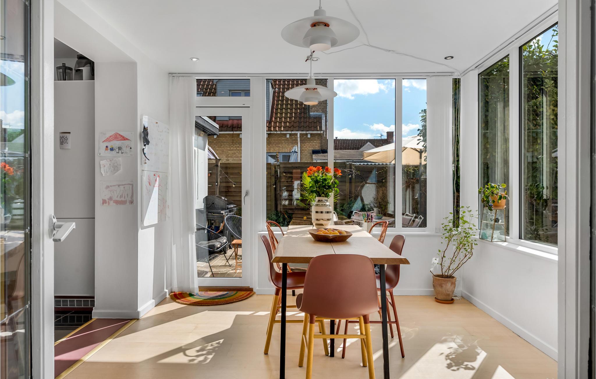 Hyggeligt familiehus på Amager med to terrasser, have og nær strandpark i København.