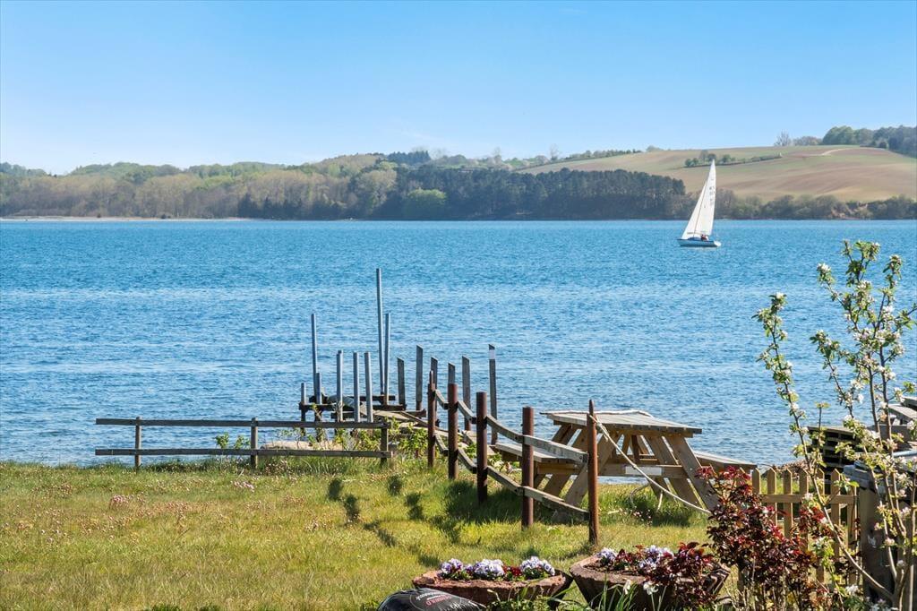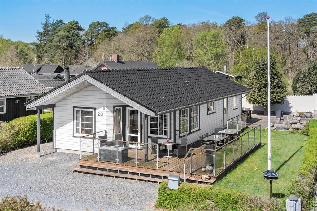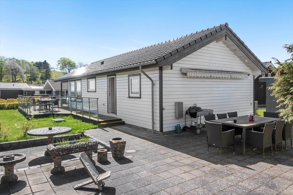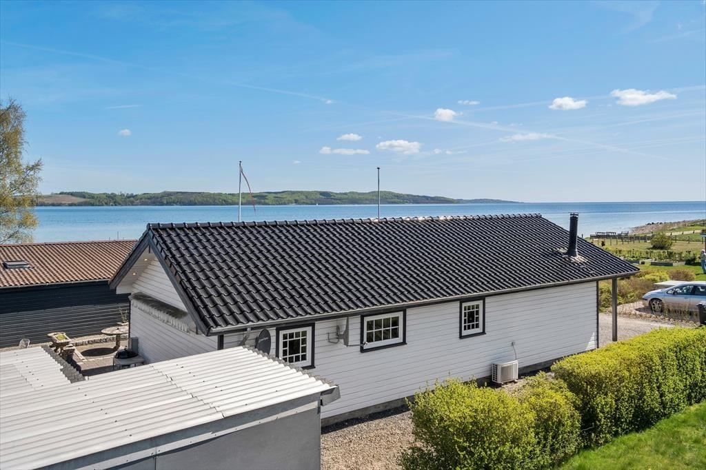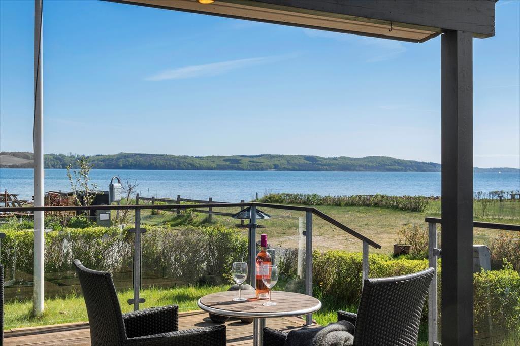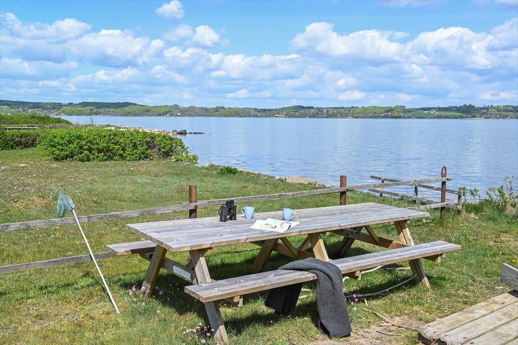 Udendørs finder du en rummelig terrasse med panoramaudsigt, der strækker sig over vandet – perfekt til stille morgenstunder med en kop kaffe eller lange grillaftener, mens solen går ned. Nabogrunden, der hører til huset, giver ekstra plads til leg og aktiviteter, så der er rig mulighed for både afslapning og sjov.