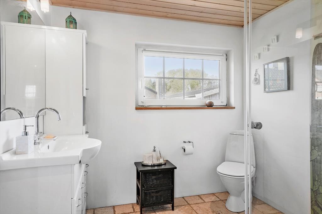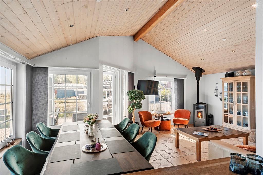 Det indbydende sommerhus på Sellerup Strandvej 26 byder på en lys og luftig atmosfære med loft til kip og store vinduer, der lader solen strømme ind. Den åbne forbindelse mellem køkkenet og stuen skaber et socialt samlingspunkt, hvor du kan nyde hyggelige middage og afslappende aftener med familie og venner. En effektiv pilleovn sørger for behagelig varme og hyggelig stemning – også på kølige dage. Den smagfulde indretning og rummelige stue inviterer til ro og samvær, mens udsigten over fjorden hele tiden er med dig i baggrunden.