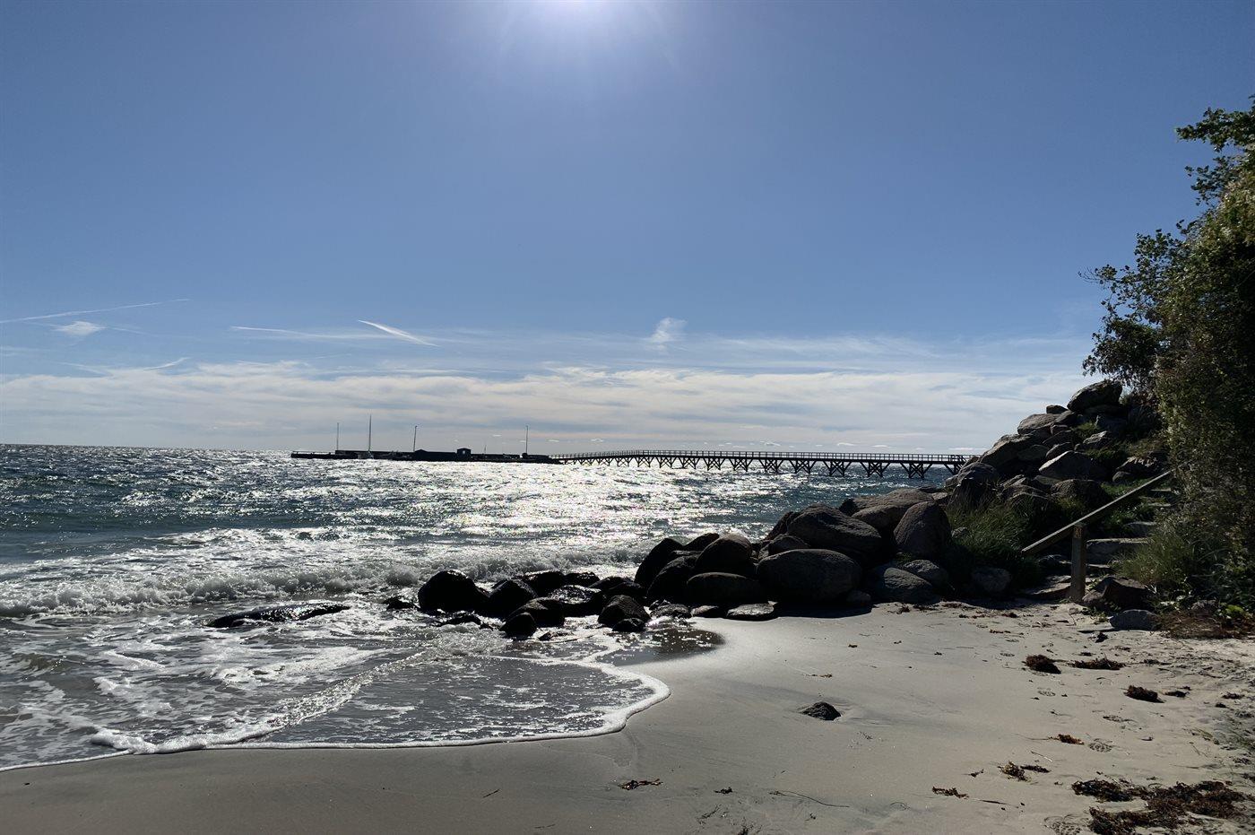 Huset ligger i det tidligere fiskerleje Arnager, så der er både strand, kystlinje og en ø-havn med en lang træbro, der giver en helt speciel oplevelse, når man vil ud for at se om de få tilbageværende fiskere måske lige er kommet ind. Bager, supermarkeder, restauranter, paddel-bane, indendørs minigolf i større skala er indenfor rækkevidde i Rønne.