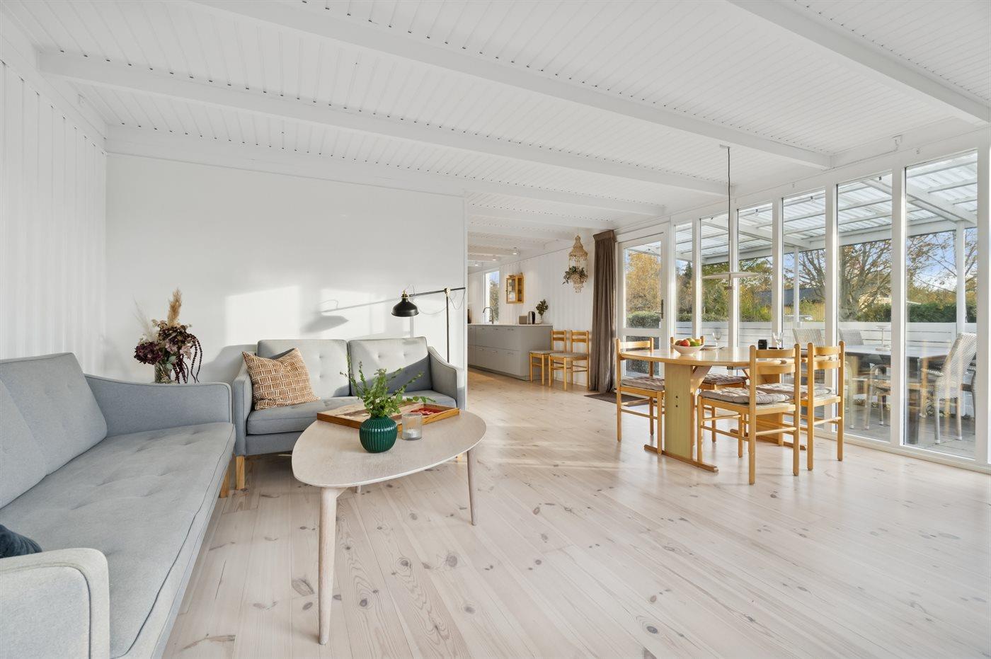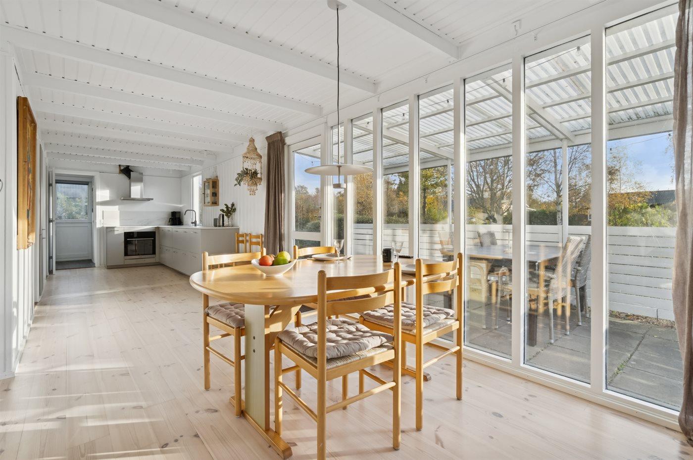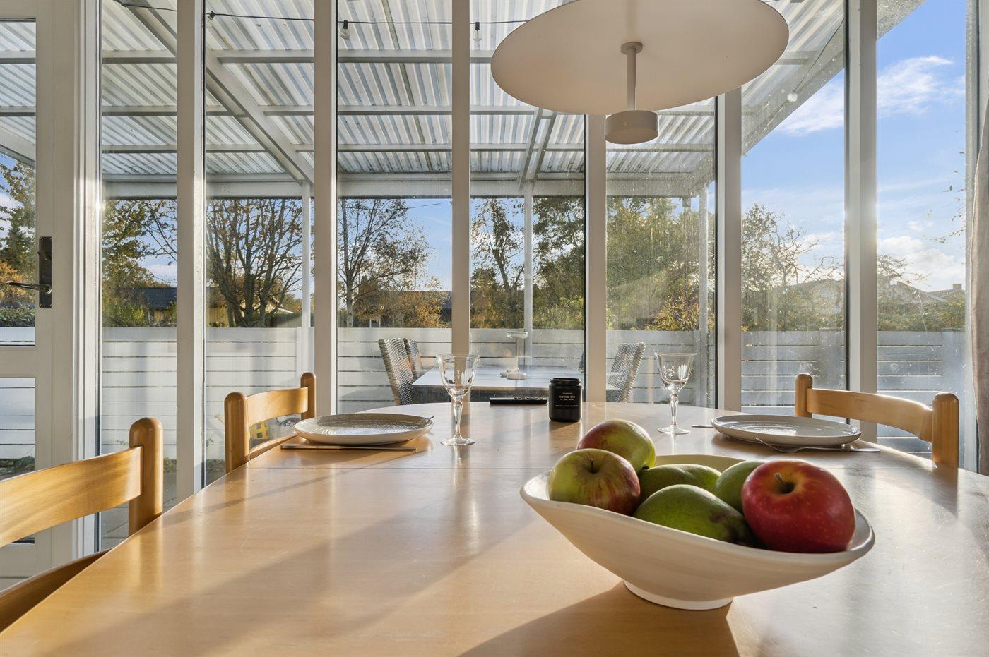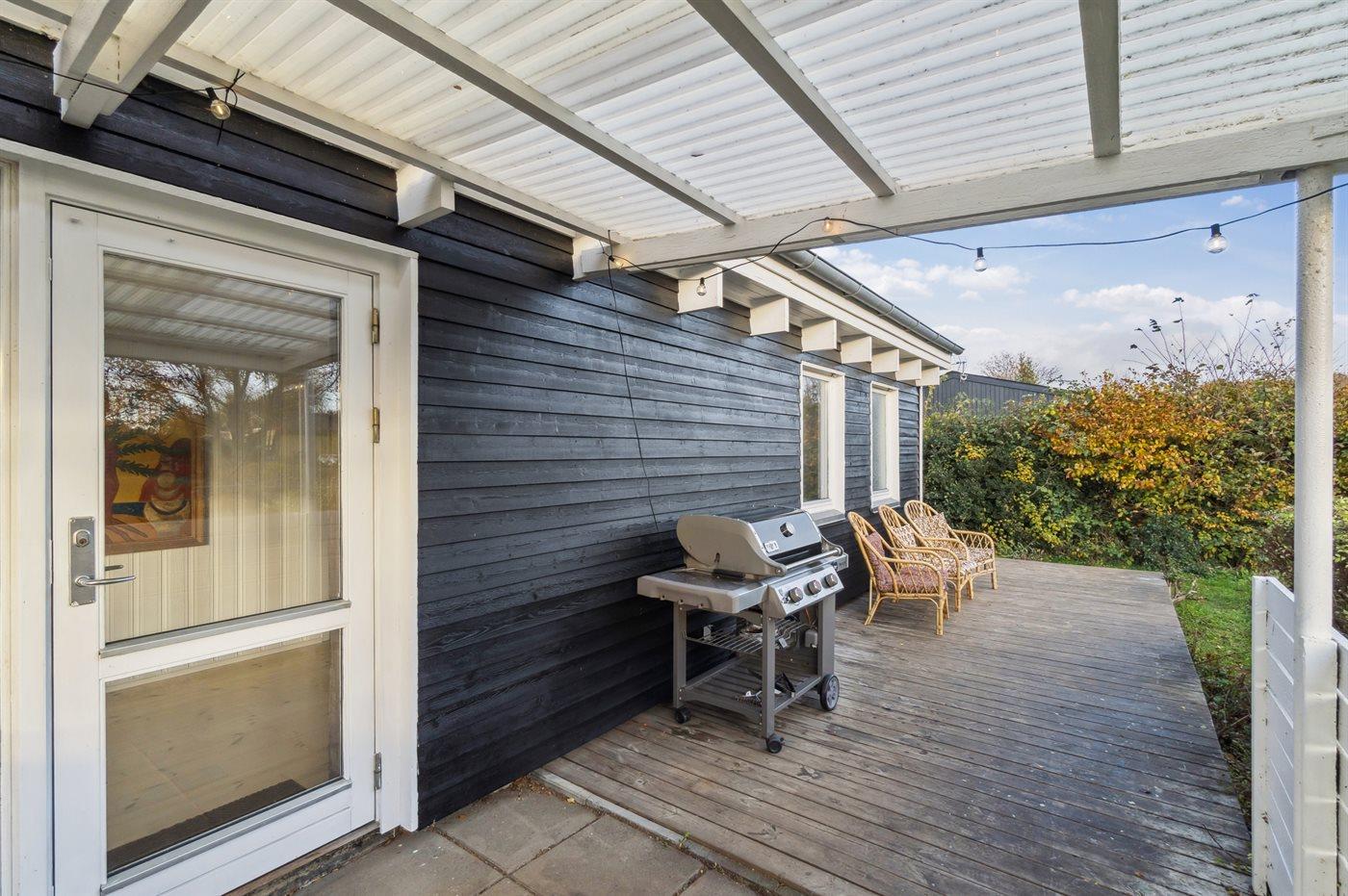 Sommerhuset har en større terrasse, der er delvist overdækket, og den er lagt, så man både kan nyde formiddagssolen og eftermiddagssolen. Haven er lys og med god plads til boldspil eller blot at nyde solen.