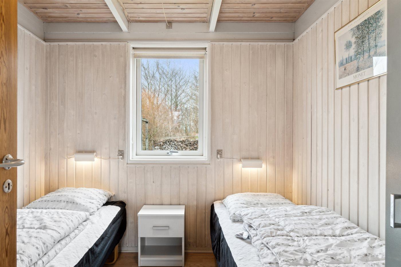 Der er i alt 2 soveværelser. Sovepladserne fordeler sig på: 2 sovepladser i dobbeltseng. 2 sovepladser i enkeltsenge.