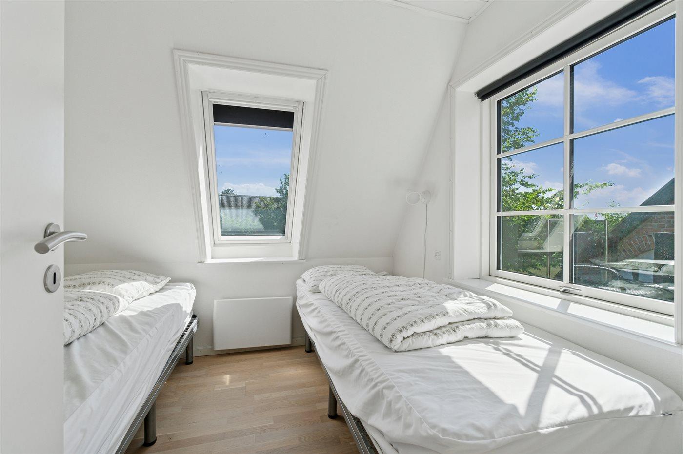 Der er i alt 3 soveværelser. Sovepladserne fordeler sig på: 2 sovepladser i dobbeltseng. 2 sovepladser i enkeltsenge. 2 sovepladser i køjeseng.