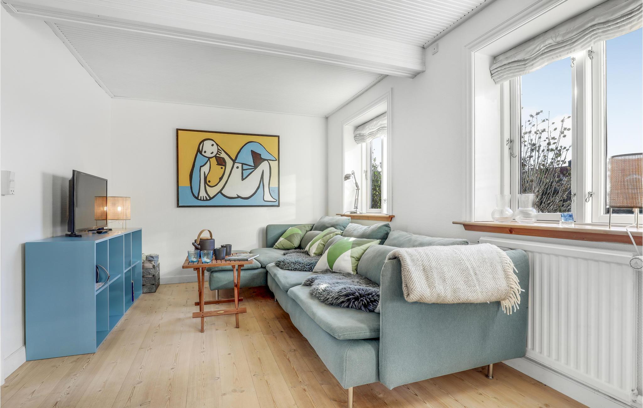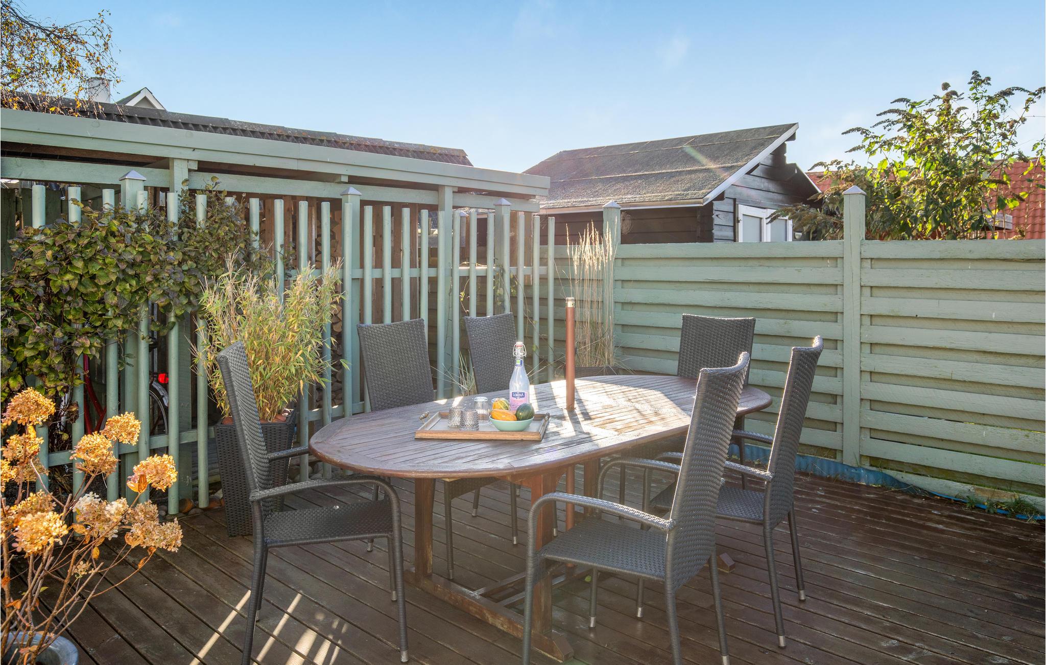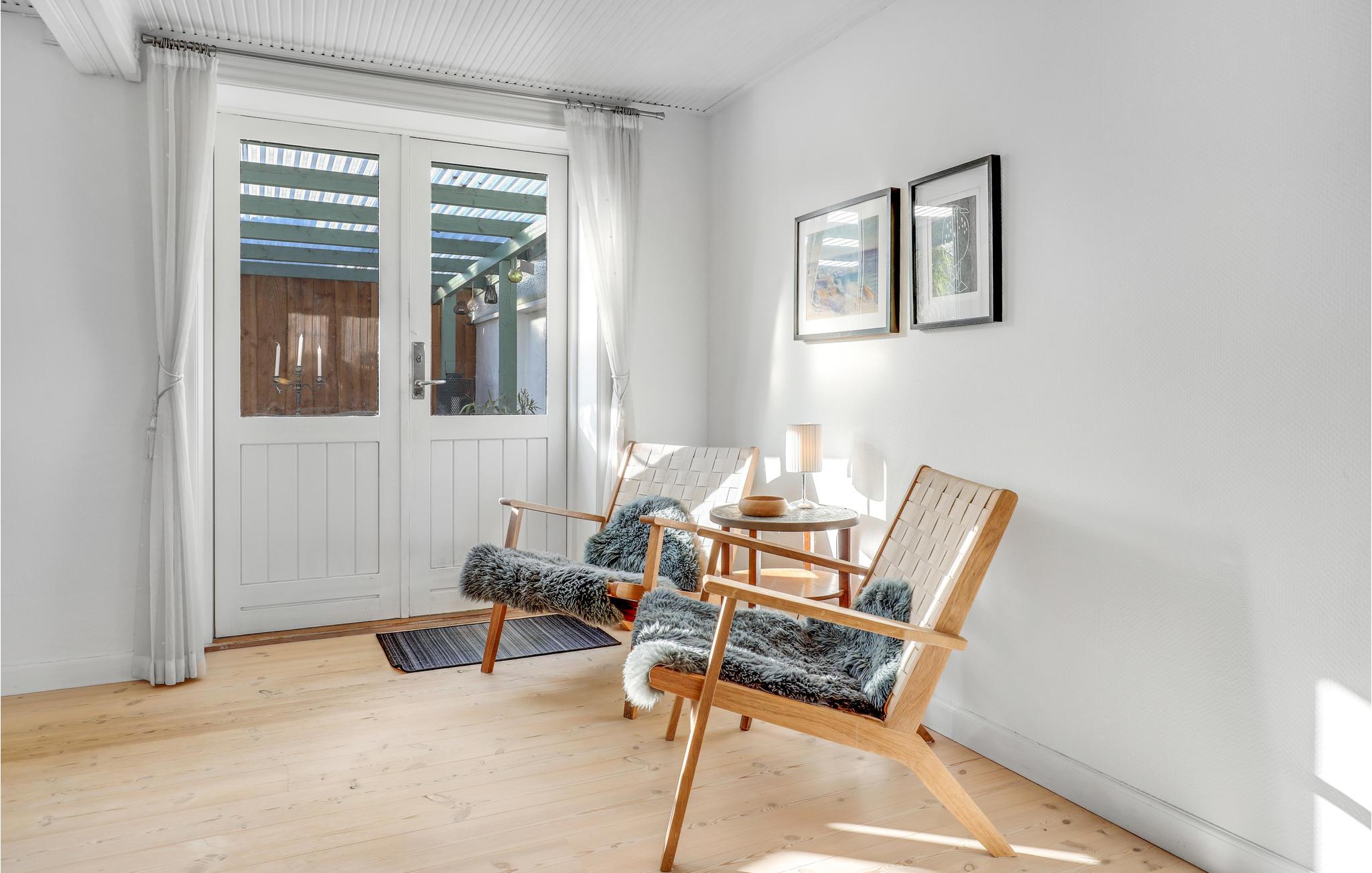 Dette lyse og venlige sommerhus byder velkommen til op til fire voksne og et barn med sine to soveværelser, et badeværelse, en køkken og en stue. På de flotte, delvist overdækkede terasser kan I spise morgenmad og senere lade dagen gå på hæld ?med et godt glas vin. I kan slappe dejligt af i haven, hvor børnene har god plads til at lege. En grill er til rådighed til hyggelige grillaftener.