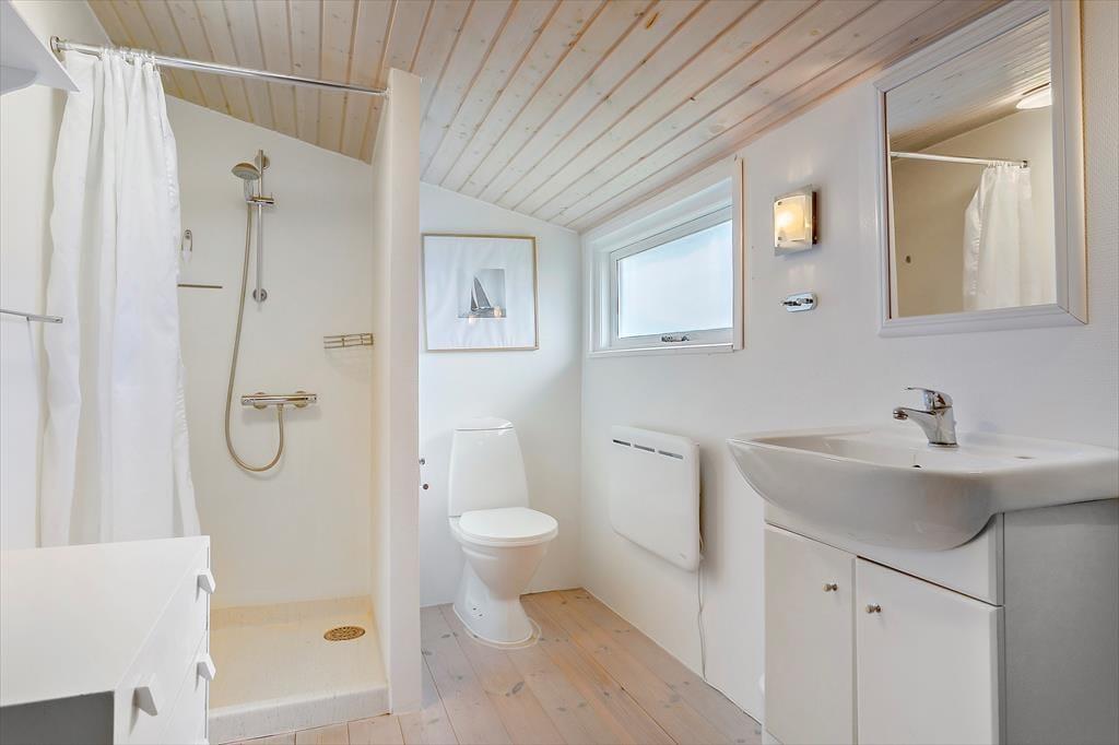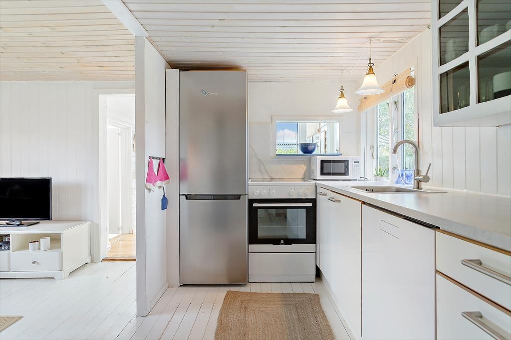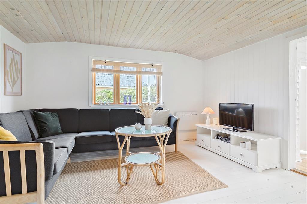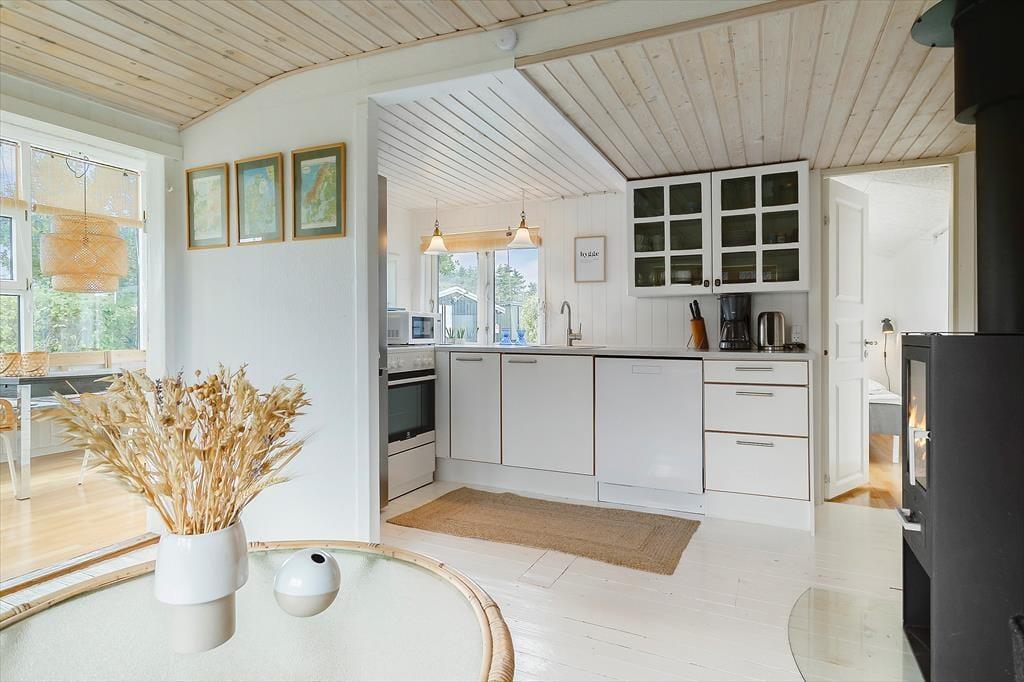 Huset har fin stue med brændeovn, sofahjørne og TV, havestue med spiseplads til jer alle, køkken med opvaskemaskine og badeværelse med brusebad og wc.
