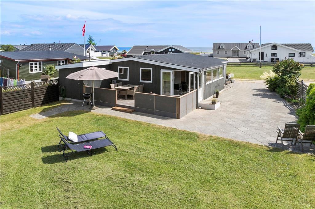 Fra sommerhuset er der en fantastisk havudsigt både til stranden og over As Vig med al livet der udfolder sig her. Her er to dejlige terrasser - så solen kan nydes fra morgenstunden til solen går ned i vest. Foran terrassen ud mod vandet ligger stort græsareal som også tilhører huset. Så er gode muligheder for udendørs spil og leg. Desuden stor boldbane kun 100 m fra sommerhuset.