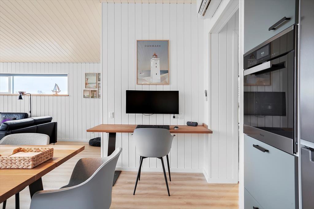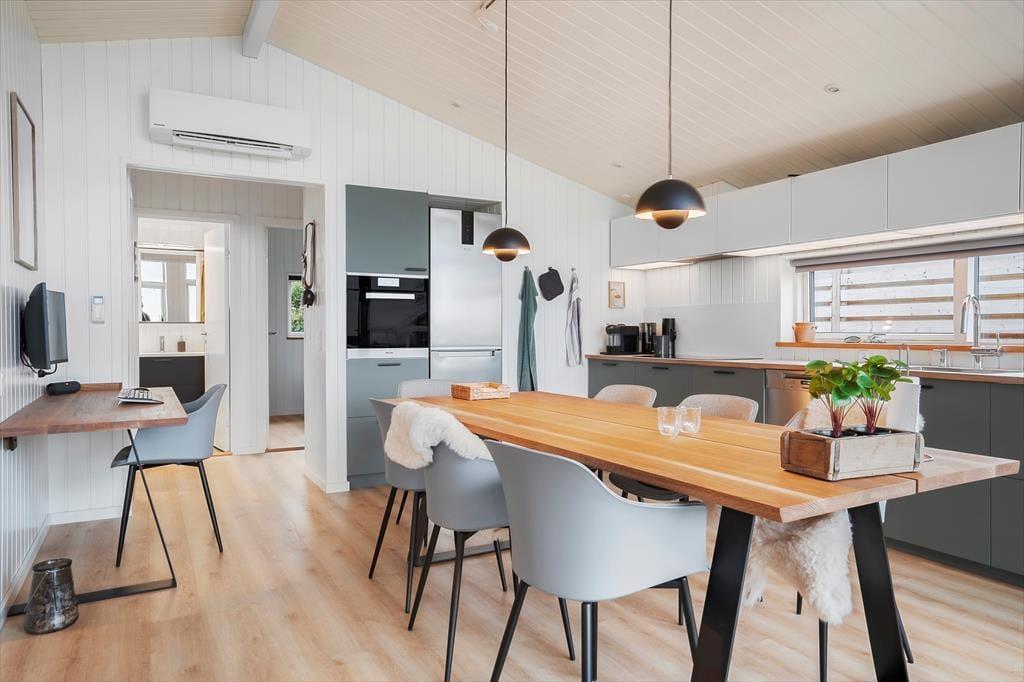 Husets hjerte er absolut køkken-alrummet med direkte forbindelse til stuen. Herfra kan I nyde den flotte havudsigt og udsigten over sommerhusområdet. Det moderne og flotte køkken har alt, hvad I har brug for under jeres ophold inkl. opvaskemaskine.