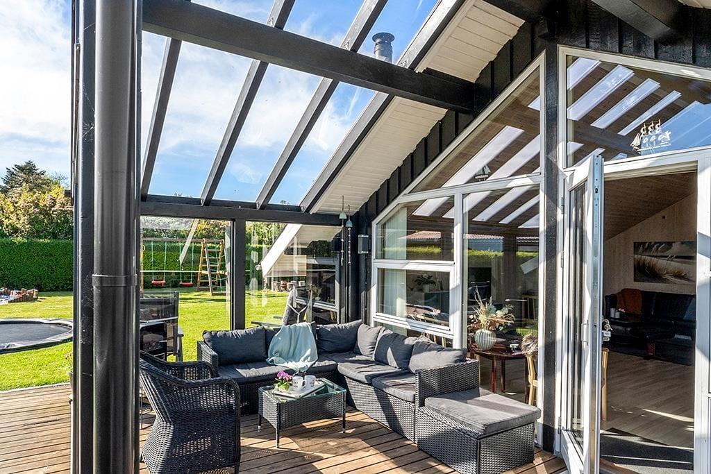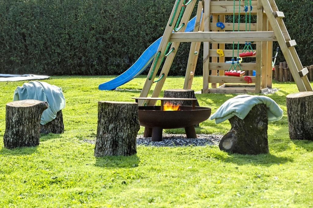 Børnene kan lege frit i haven med trampolin, gyngestativ og sandkasse. På terrassen er der behagelige havemøbler, hvor man kan slappe af og nyde solen. Der er også en gasgrill til rådighed, så man kan lave lækre måltider i løbet af ferien.
