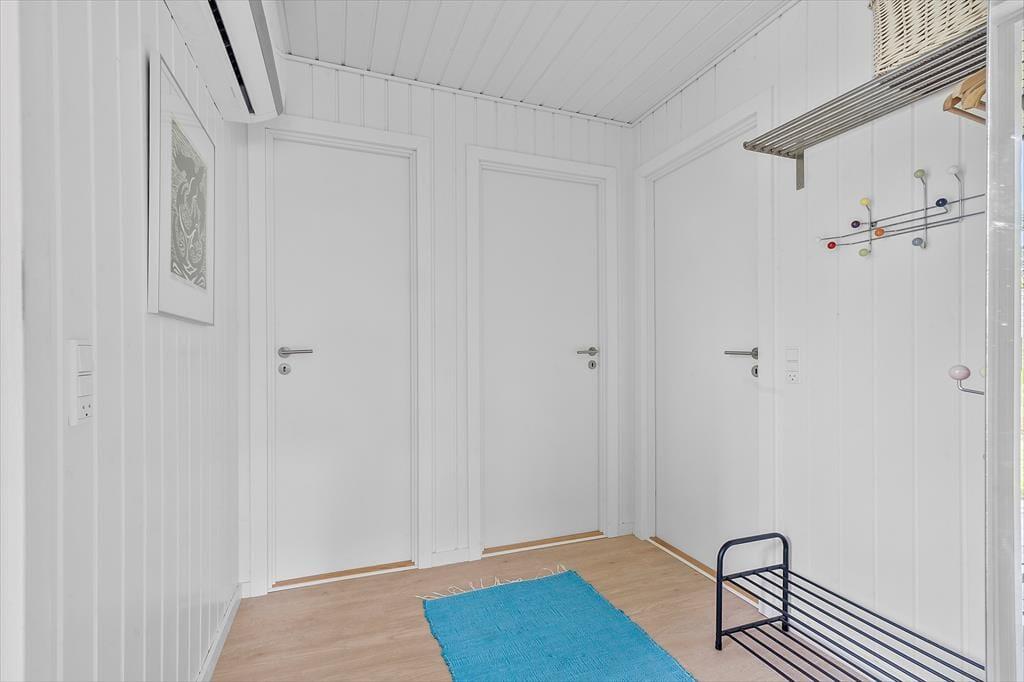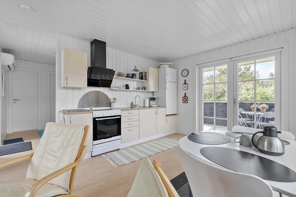 Køkkenet har alt hvad I har brug for under jeres ophold. Køkkenet har fin spiseplads med plads til alle og åben adgang til stuen. Husets sovepladser fordeler sig på 2 soverum; et soverum med dobbelt seng og et soverum med køjeseng samt enkelt seng. Badeværelse er med brus, wc og gulvvarme. Der er desuden mulighed for at få vasket badehåndklæderne i huset vaskemaskine efter en lang dag ved stranden.