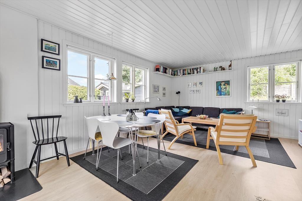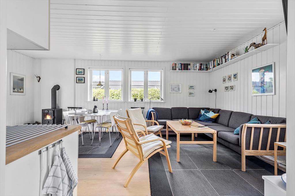 Stuen er med udgang direkte til dejlig overdækket træterrasse. I stuen vil I helt sikkert samles i sofagruppen til brætspil, hygge og kvalitetstid med hinanden. Der er gode siddepladser til jer alle og selvfølgelig TV-pakke med danske, tyske, svenske og norske kanaler.