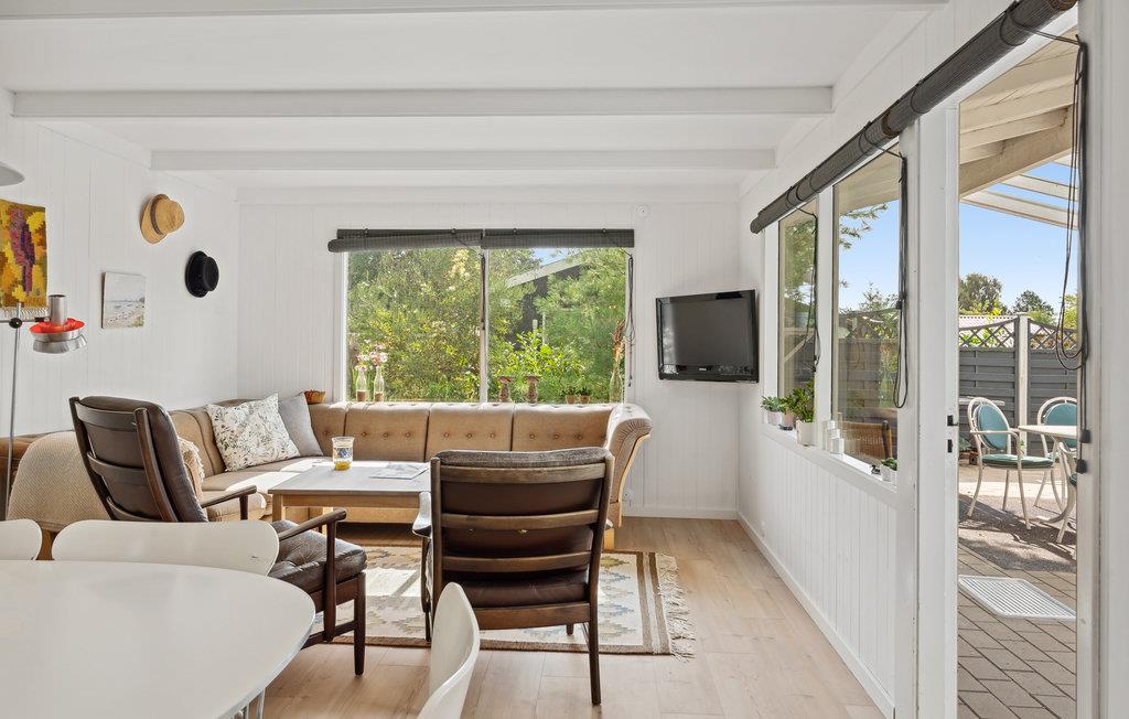 Dette feriehus i grønne omgivelser byder jer velkommen med en fremragende beliggenhed i kort afstand fra stranden. Brug det smagfuldt indrettede hus med lyse rum og klassisk, hyggelig sommerhuscharme som base for en god tid med familien. Siddegruppen i den lyse stue indbyder til hyggelige aftener med spil eller yndlingsfilm. På varme dage kan I rykke måltiderne udenfor, nyde lidt lækkert fra grillen på terrassen og slikke sol i den lukkede have. På køligere dage kan I benytte den overdækkede terrasse. Gå de få skridt til stranden og nyd havet, solen og det fine sand i fulde drag.