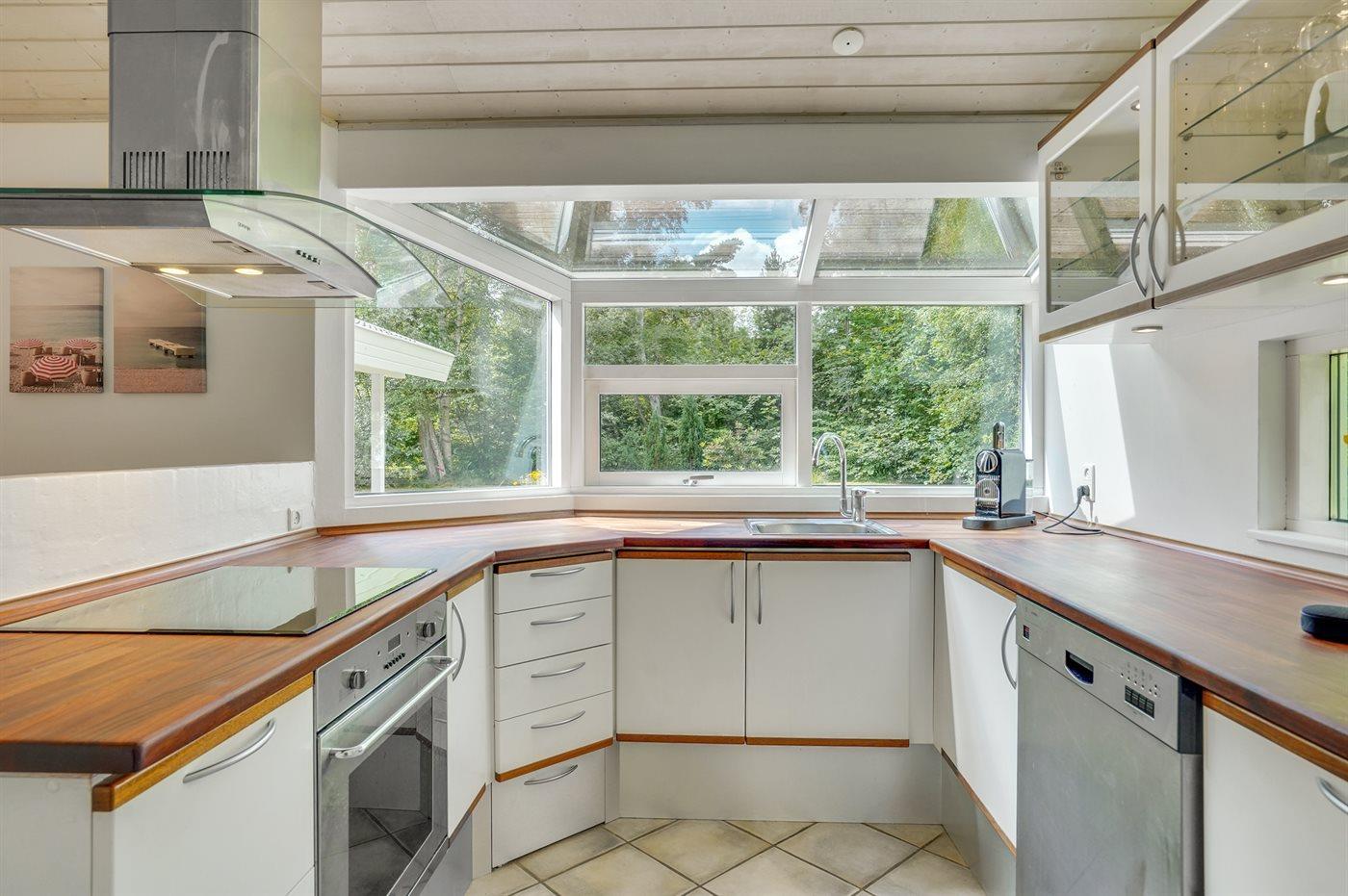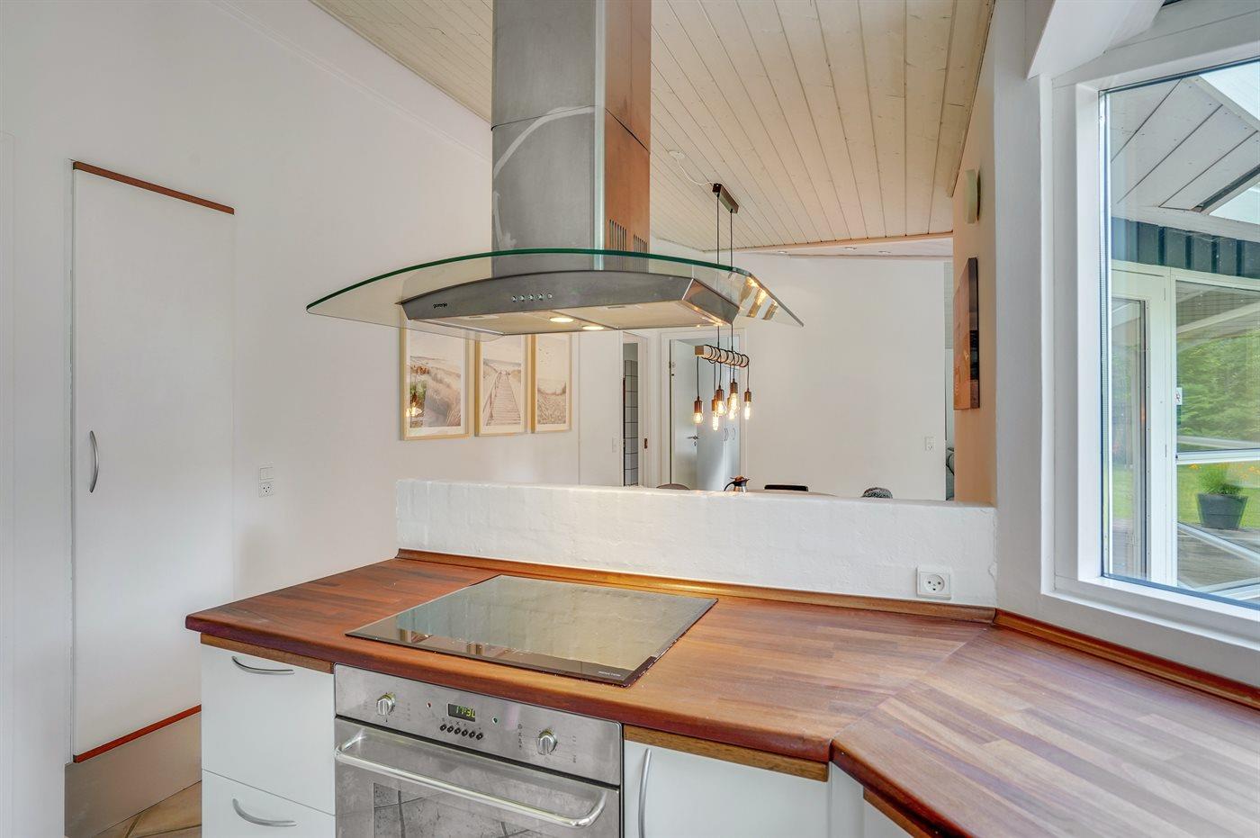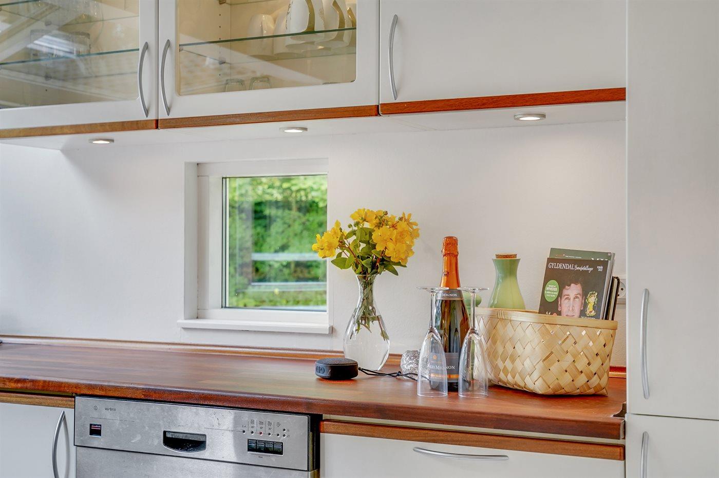 Køkkenet er udstyret med 1 køleskab. Der er 4 keramiske kogeplader, varmluftovn samt opvaskemaskine.
