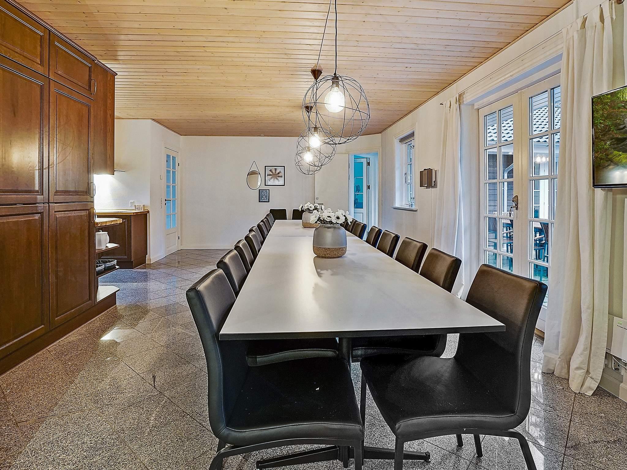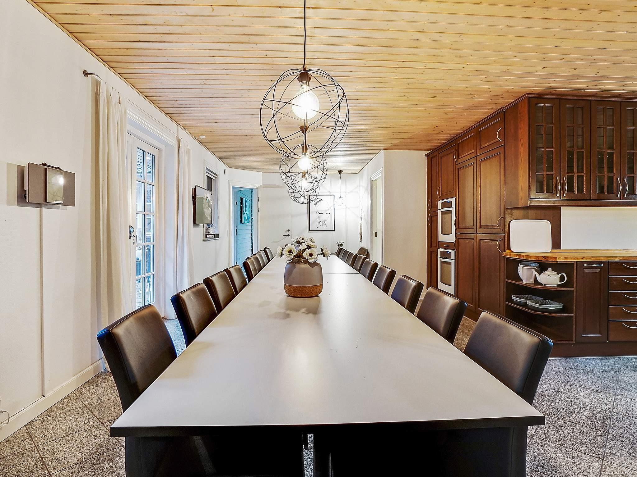 Spise-/opholdsrum er smagfuldt indrettet med stereoanlæg med cd-afspiller, tv, blu-ray-afspiller og høj barnestol. I det gennemtænkte køkken er der stort køleskab, fryseskab samt to opvaskemaskiner og to komfurer, så der er rig mulighed for at kokkerere.
