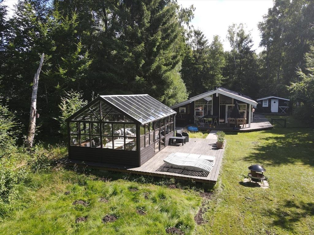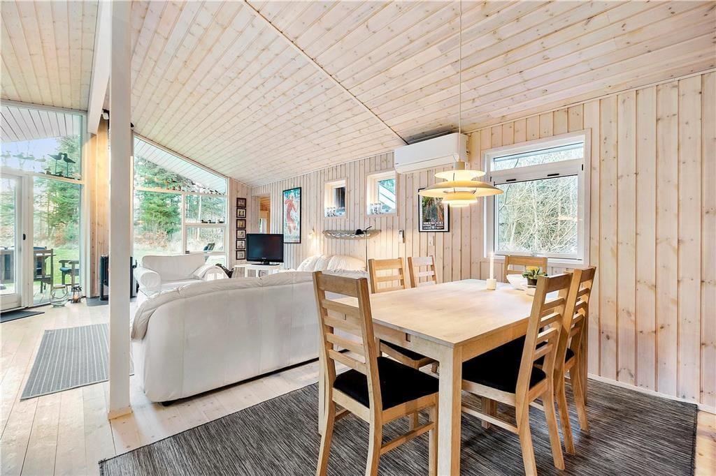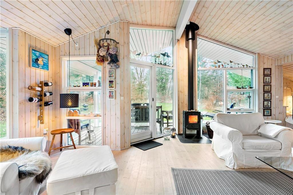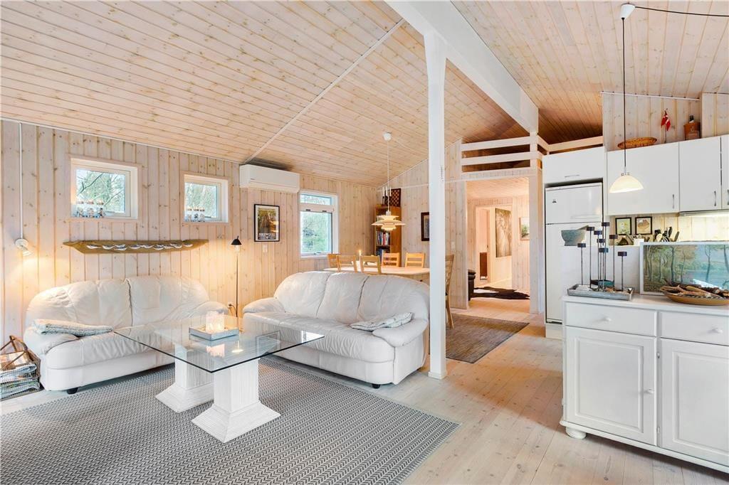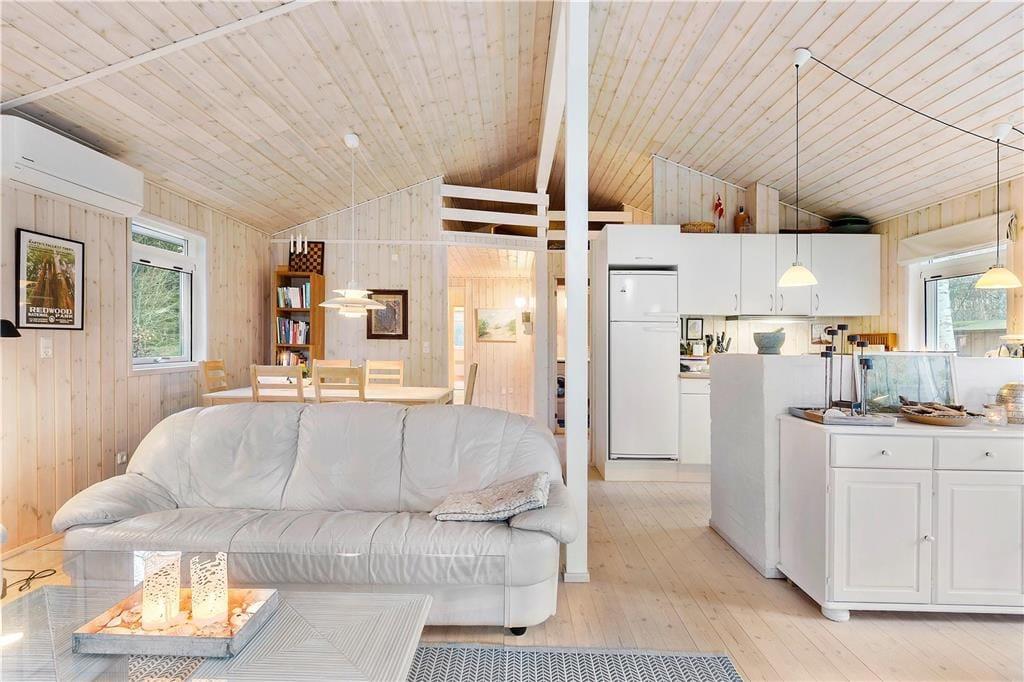 Træd ind i dette smukke sommerhus, hvor nordisk design og rummelighed skaber en perfekt ramme for afslappende feriedage.