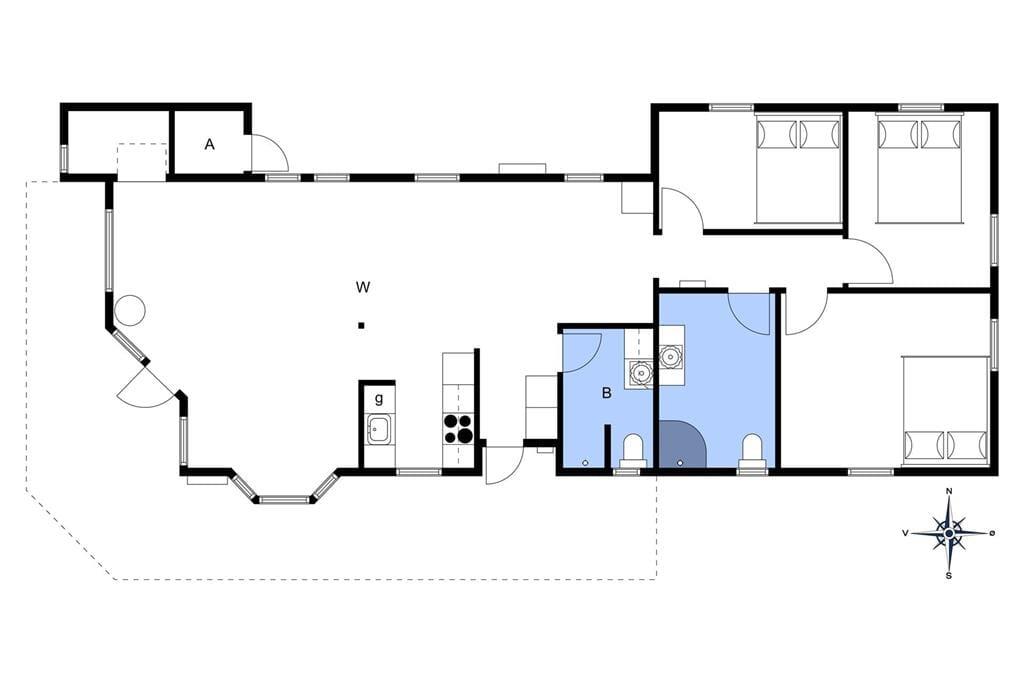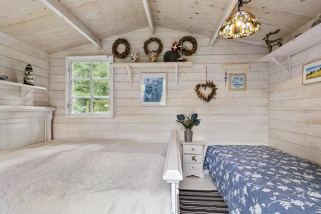 Når du træder ind i sommerhuset, vil den lyse og stilfulde indretning straks byde dig velkommen. Med to soveværelser, en hyggelig alkove og to moderne badeværelser i hovedhuset, er der god plads til familien. I det tilhørende anneks finder du yderligere et soveværelse med dobbeltseng og egen terrasse – ideelt til gæster eller dem, der ønsker ekstra privatliv.
