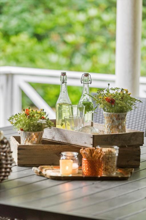 Du kan sidde på den overdækkede terrasse og nyde morgenmaden, mens du kigger ud i den store have. Den naturskønne udsigt og det rige dyreliv skaber en fredfyldt start på dagen. Terrassen er udstyret med komfortable havemøbler og en grill, så du kan tilberede og nyde udendørs måltider i alle vejrtyper.