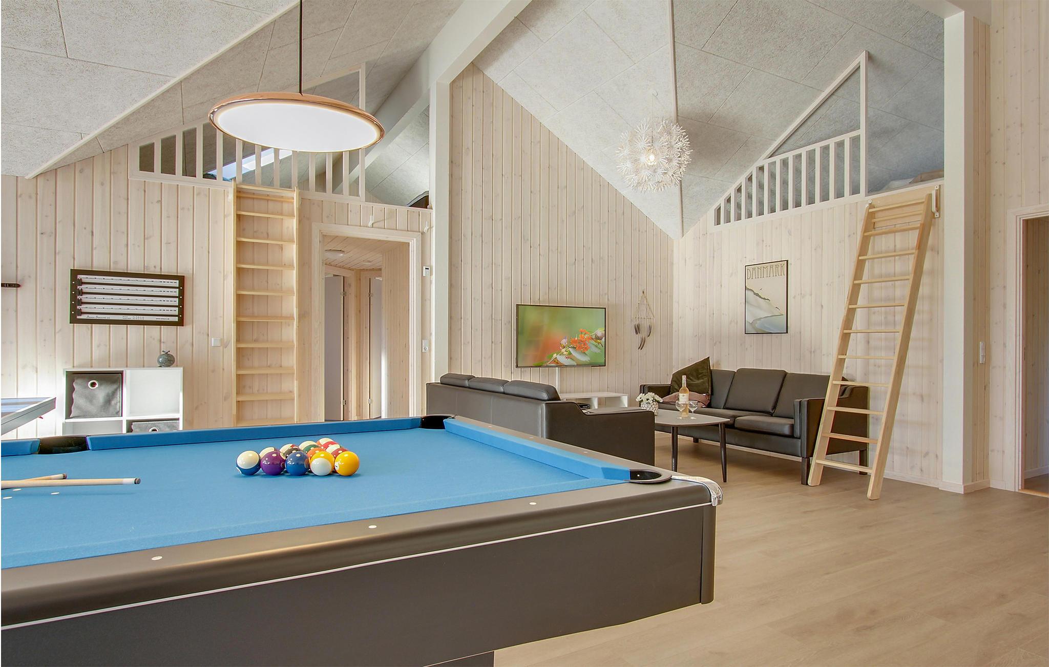 I huset er der, uanset vejr og årstid, mulighed for en ferie fuld af aktiviteter. Der er nemlig et stort aktivitetsrum, som både er udstyret med billardbord, Playstation 4, bordtennis, dart, Airhockey og bordfodbold. Giv den gas med spillene og nyd en kold forfriskning i sommerhusets helt egen bar med køleskab, som også står i aktivitetsrummet.
