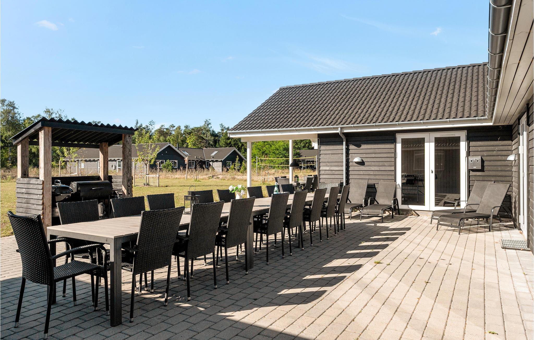 På den store og delvist overdækkede terrasse kan I grille og nyde den danske sommer. Huset er udstyret med en BarbecueMaster-grill, hvor man kan grille hele pattegrise. På plænen vokser der frugttræer, og der er en stor boldbane, legeplads med sandkasse, petanque-bane og trampolin. Hvis I ankommer til huset i el-bil, er der to ladestandere.
