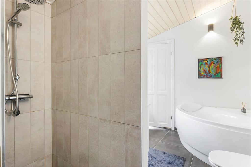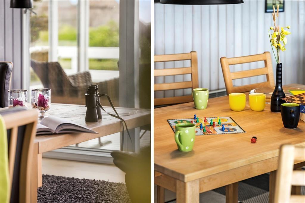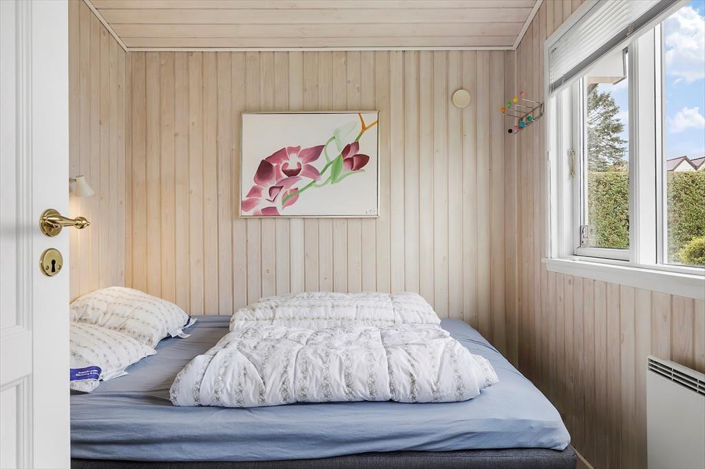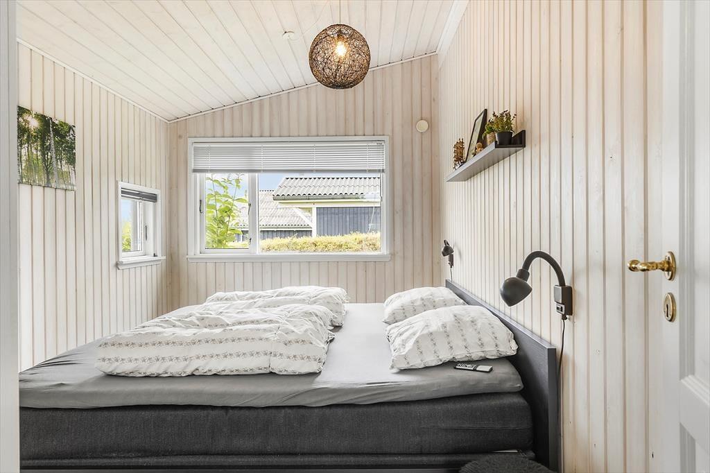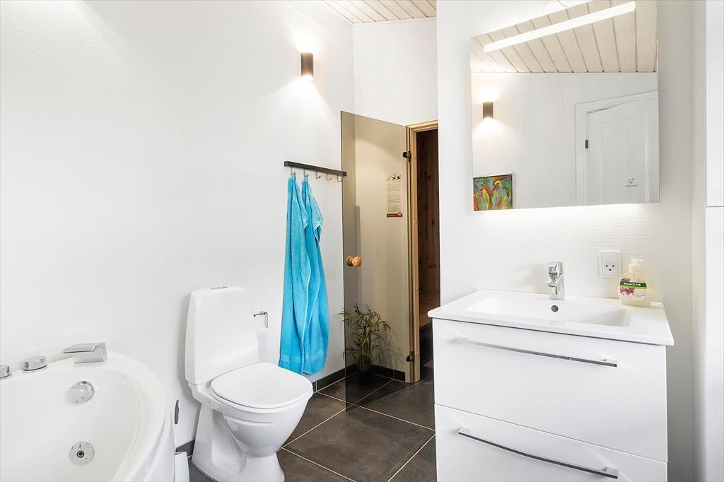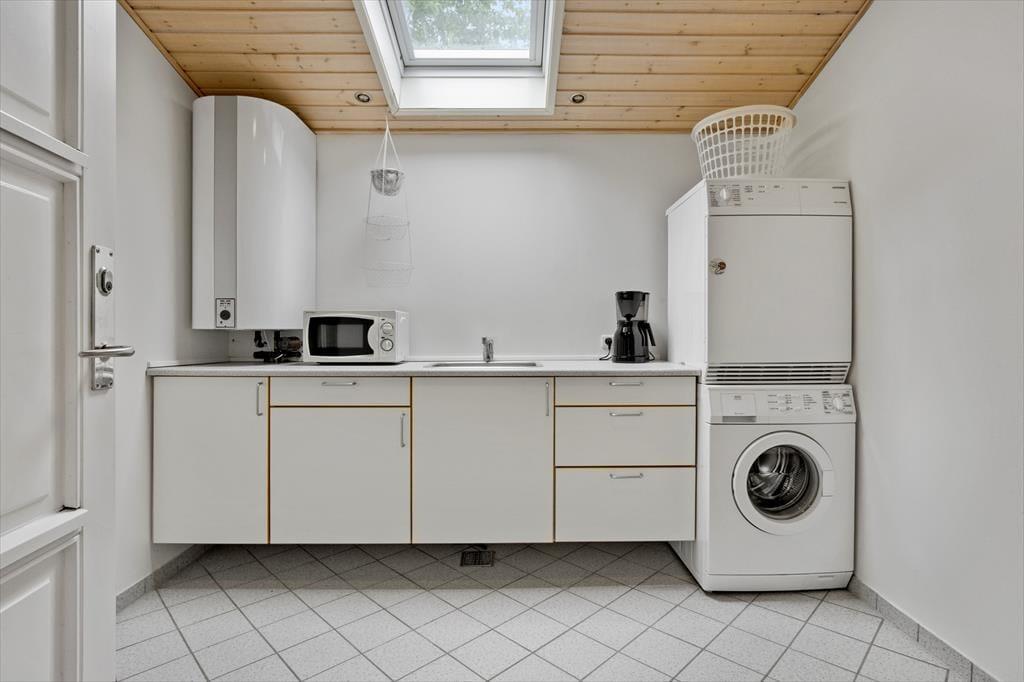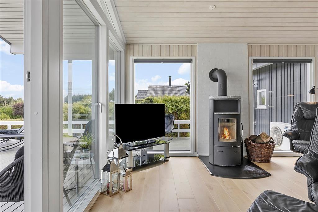 Som du træder ind i sommerhuset, mødes du af et rummeligt og lyst miljø. Det åbne køkken går i ét med stuen, hvor det store vinduesparti lader lyset strømme ind og giver en vidunderlig udsigt over vandet. Her kan du samles med familie og venner omkring brændeovnen på kølige aftener, mens I nyder synet af flammernes dans. Det dejlige badeværelse byder på både sauna og spabad, hvor du kan forkæle dig selv med afslapning og velvære efter en dag fyldt med aktiviteter. Der er også et stort vaskerum med vaskemaskine og tørretumbler, hvilket gør det nemt at holde styr på ferievasken.