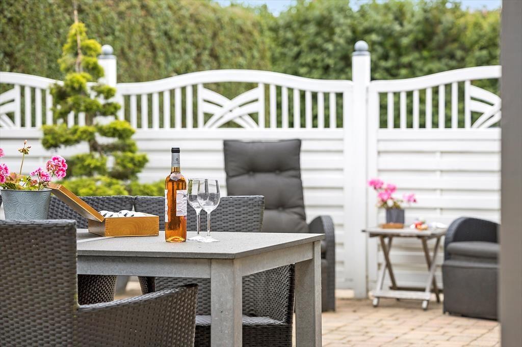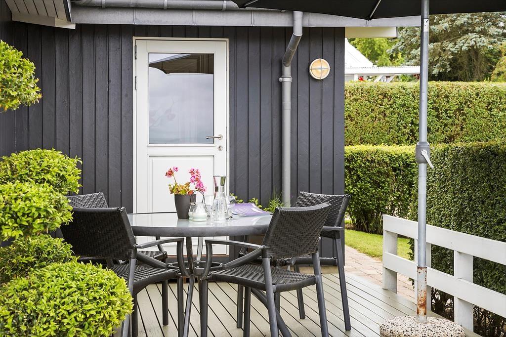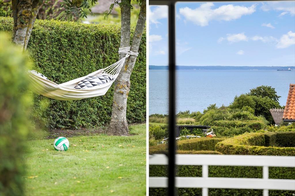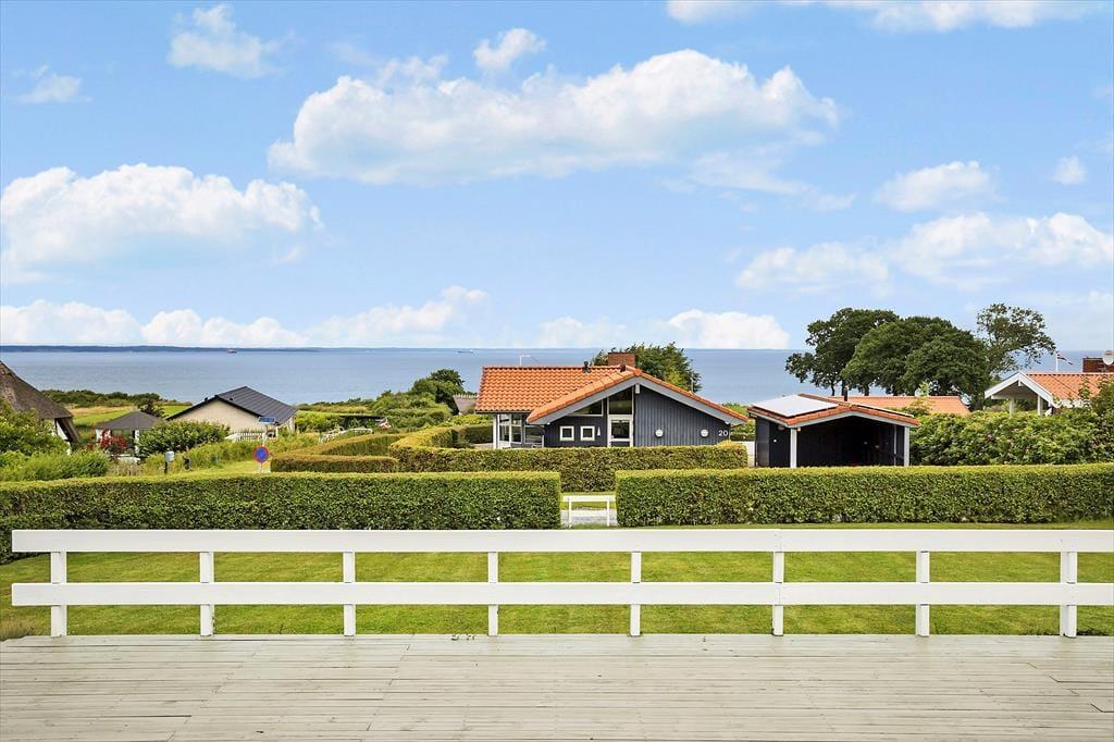 Sommerhuset byder på et stort terrasseområde med en fantastisk panoramaudsigt over Lillebælt. Her kan du tilbringe dagen med at solbade, nyde måltider under åben himmel eller bare slappe af med en god bog. Trappen fra terrassen fører dig ned til den dejlige have, hvor børnene kan lege, og du kan finde en fredfyldt plet til en stille stund. Morgenkaffen smager ekstra godt med havudsigten som baggrund, og aftenerne bliver magiske med grillmad og solnedgangen over vandet.