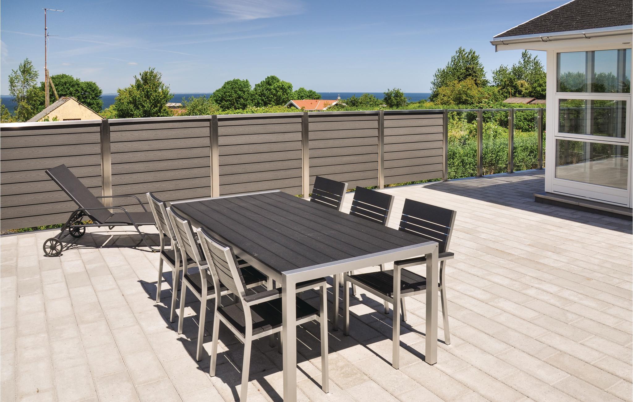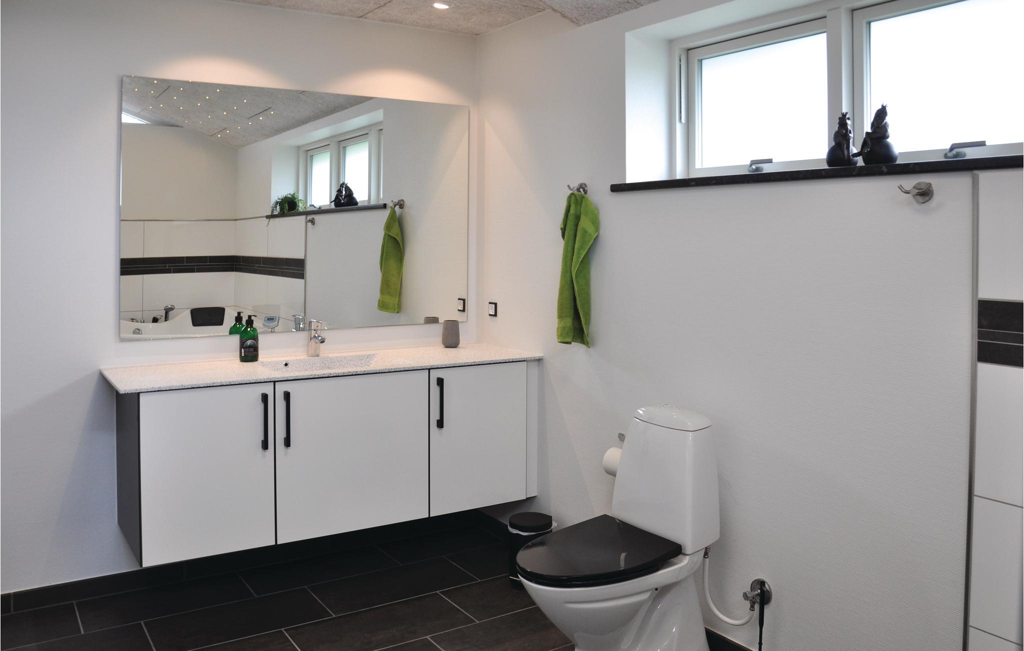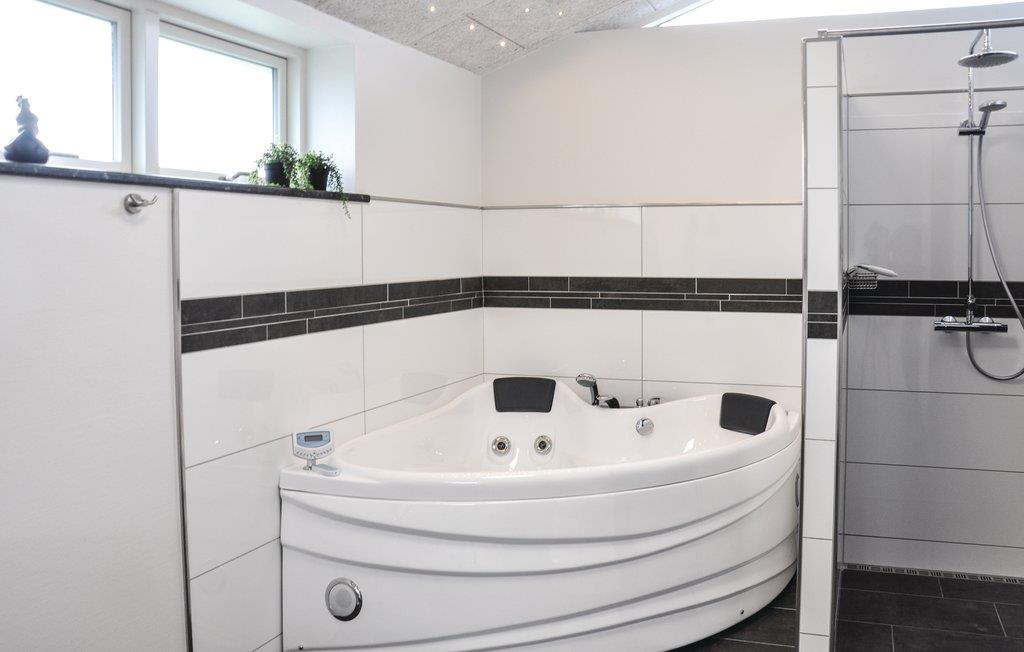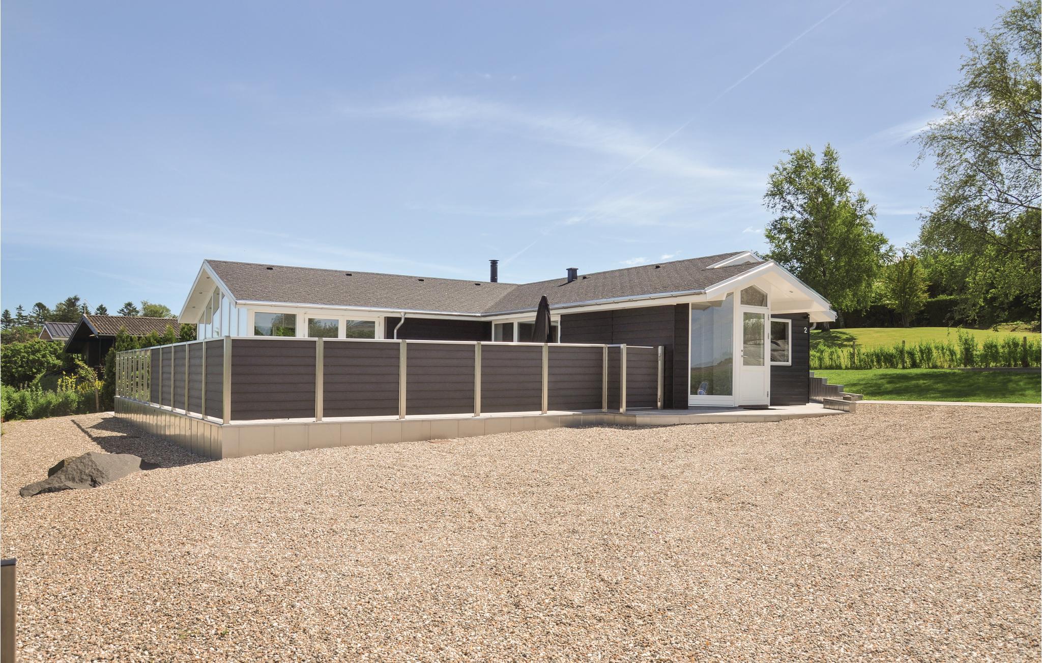 Moderne sommerhus tæt på Båring Vig med havudsigt og spabad, perfekt til en afslappende ferie ved vandet.