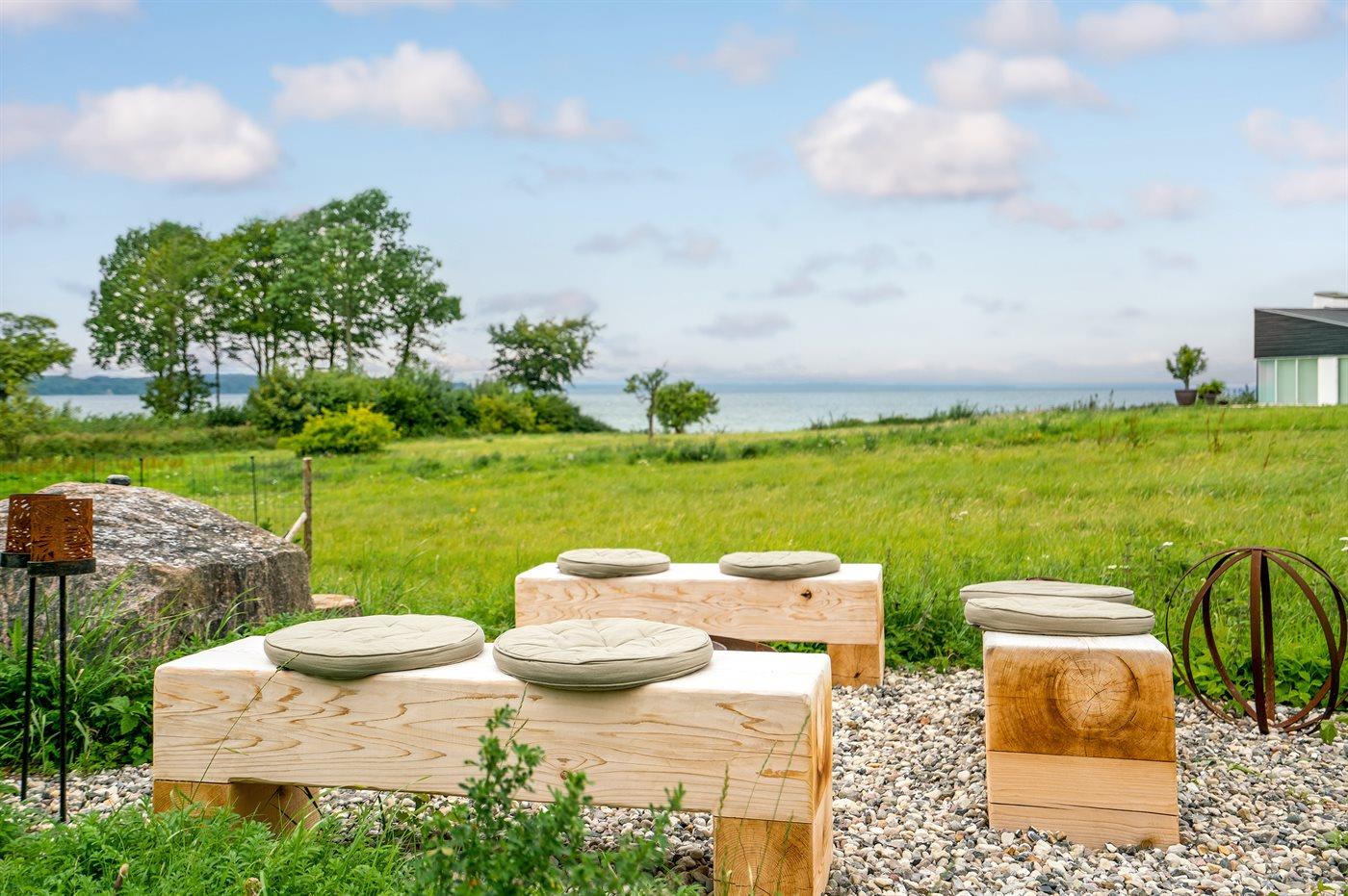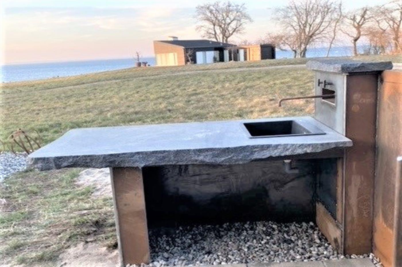 Ferieboligen er beliggende på en 707 m² stor havegrund. Der er 100 m til havet. Nærmeste forretning er beliggende i en afstand af 4800 m. Der er en golfbane i en afstand af 10000 m. Til ferieboligen hører 80 m² terrasseareal. Udgang til altan. Der er redskabsrum. Bålsted. Der er mulighed for at tilberede maden udendørs i udekøkkenet. Grill til rådighed. Der er installeret stik til opladning af elbil. Parkering ved ferieboligen.