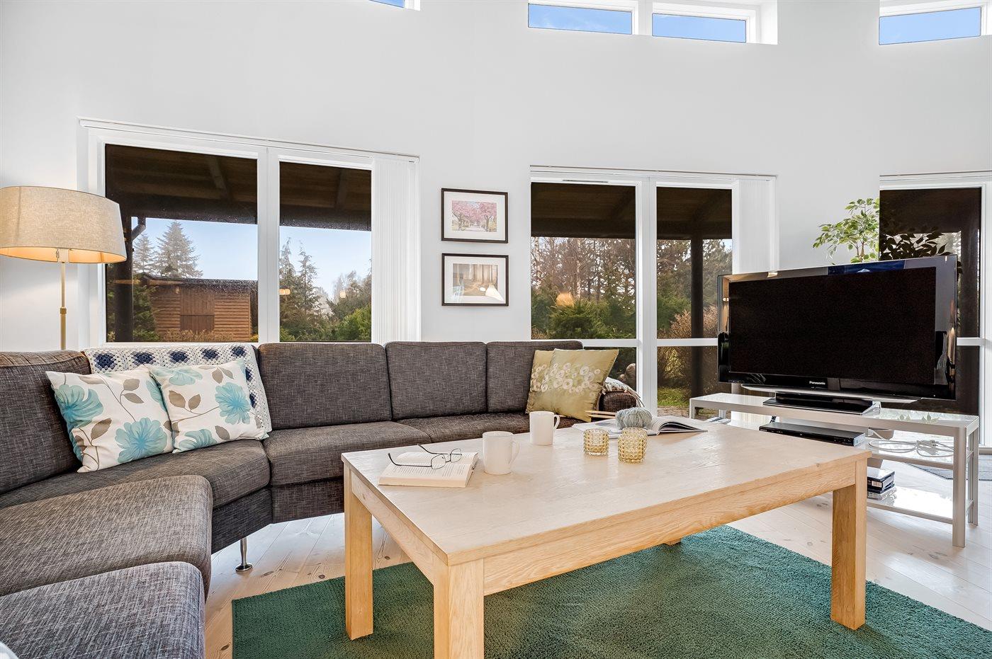 I dette sommerhus føler man sig hjemme med det samme. Her er højt til loft, lyst og venligt. Der er bl.a. luft/luft varmepumpe, brændeovn, tv med Chromecast, og man kan streame via internettet, som er gratis. Husk at medbringe computer eller iPad selv.