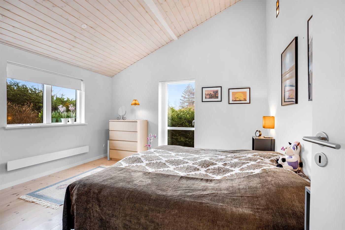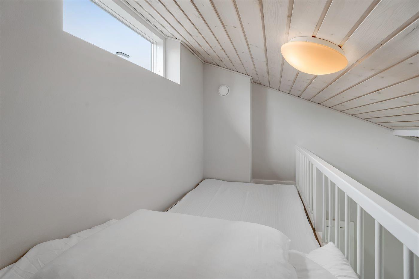 Der er i alt 3 soveværelser. Sovepladserne fordeler sig på: 4 sovepladser i dobbeltsenge. 2 sovepladser i enkeltsenge. 1 soveplads på madras. Derudover er der 1 stk. barneseng.